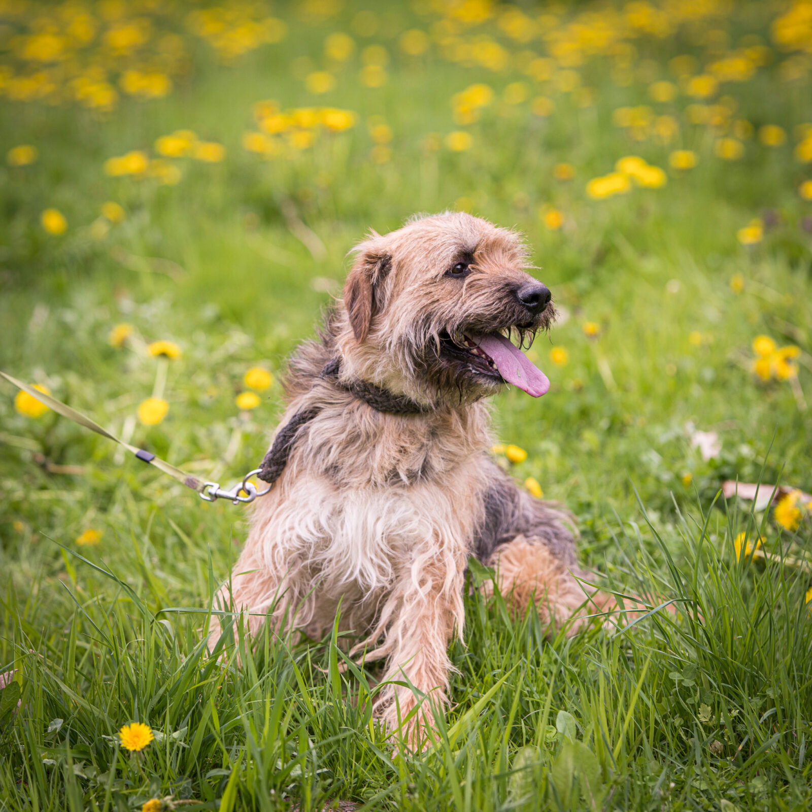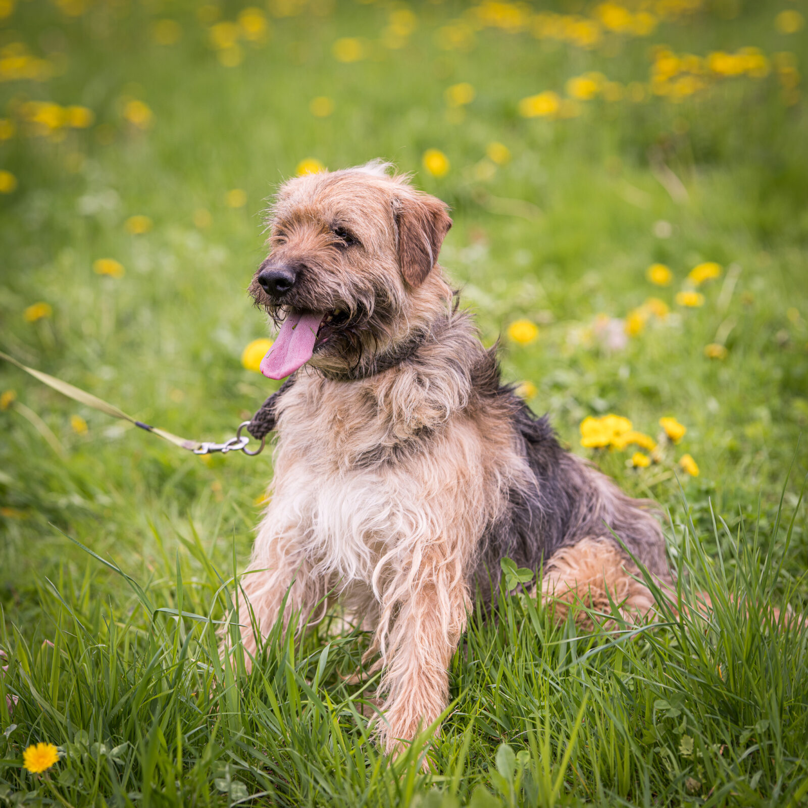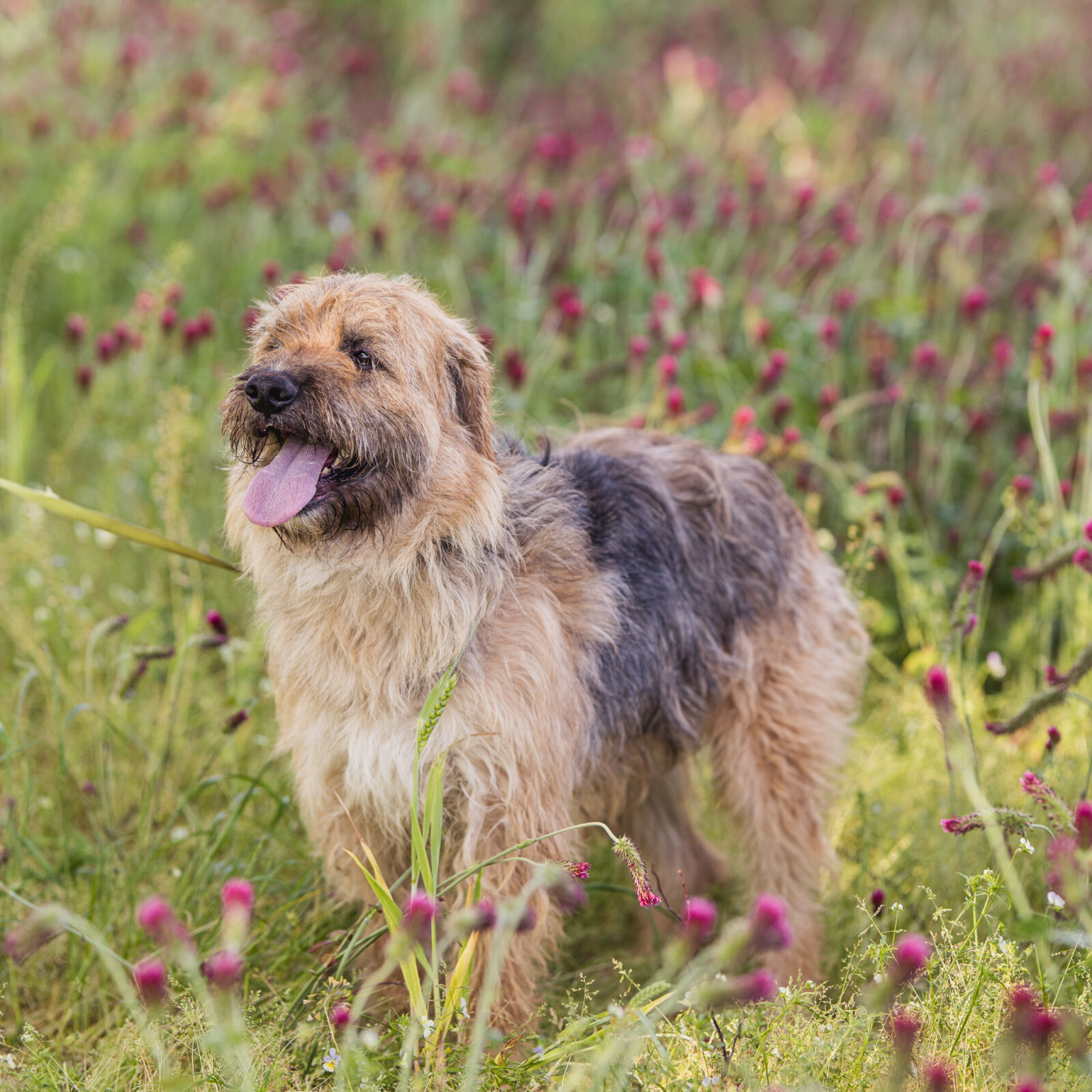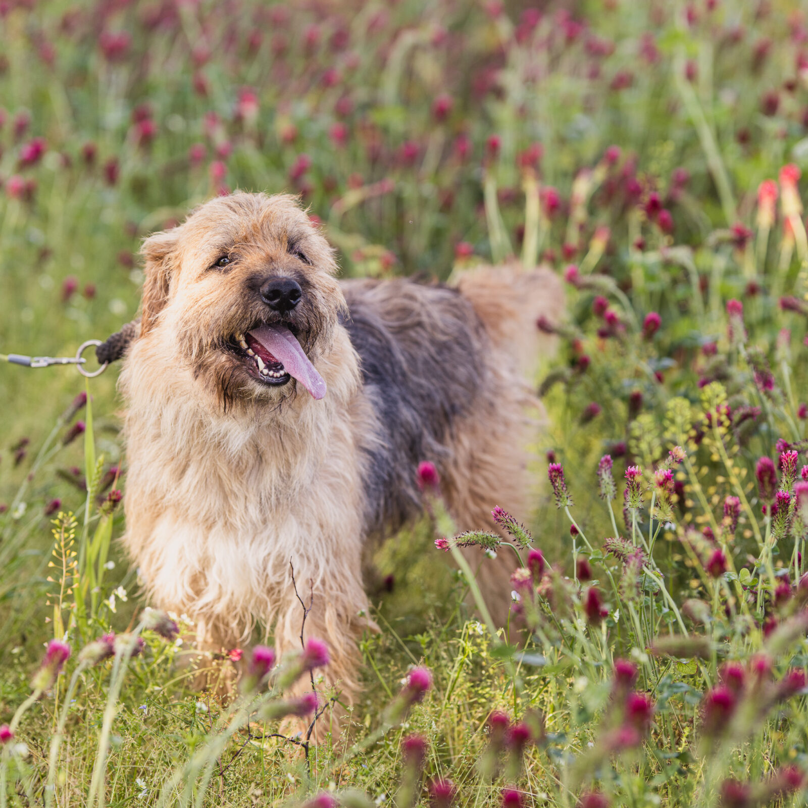 Apollo je 3 letý kříženec (zřejmě teriéra) na vyšších nohách, vážící asi 28 kg. Zpočátku nás vítal štěkotem a vrčením, protože lidem příliš nevěří, ale po pár dnech si nás oblíbil a vítá nás vrtícím ocasem. Vzhledem k tomu, že žil hlavně na zahradě a v kotci, není socializovaný s lidmi, psy atd. Na procházkách má tendence na lidi poštěkávat a ježit se, ale to plyne jen z nedůvěry a pracujeme na odbourání. Ke psům se hrne spíše se zájmem o hru. V minulé rodině byl zvyklý na děti a také na dalšího psa se kterým vycházel bez problému.