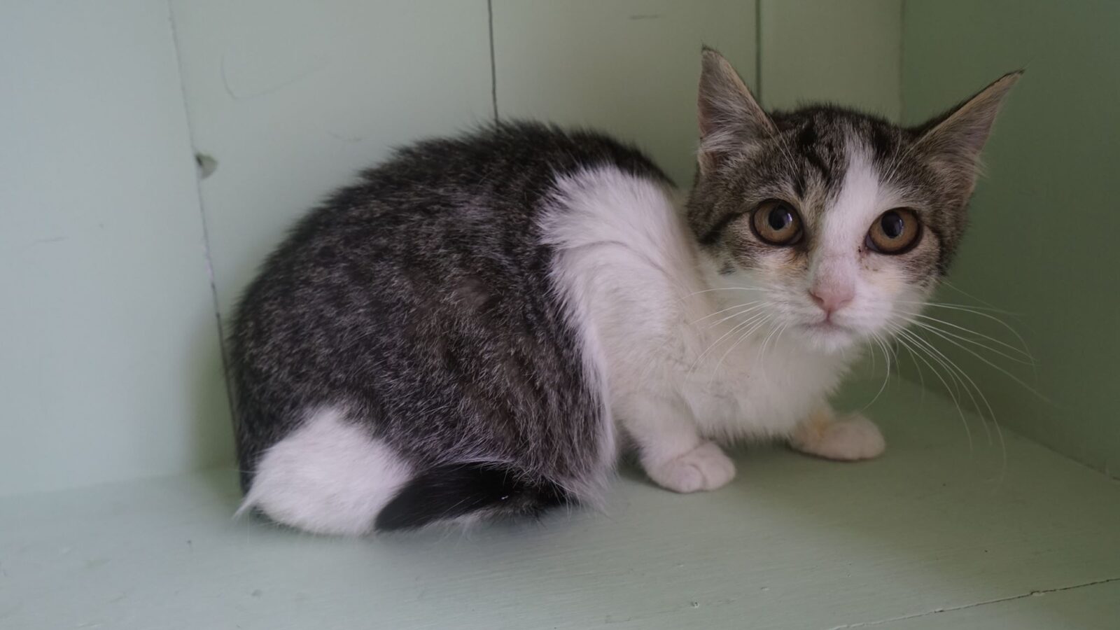 Kačenka je asi 2,5 měsíční kočička. Byla nalezená spolu s kočičkou Karolínkou. Koťátka trpěla velmi silnou rýmou a bude ještě chvíli trvat, než bude možné je naočkovat. Jejich sourozenci bohužel takové štěstí neměli, jeden se ztratil a druhého srazilo auto. Holčičky dostaly šanci a my doufáme, že se nám podaří najít pro ně vhodný domov. Pořád ještě člověku úplně nevěří, ale jistě se to brzy prolomí.