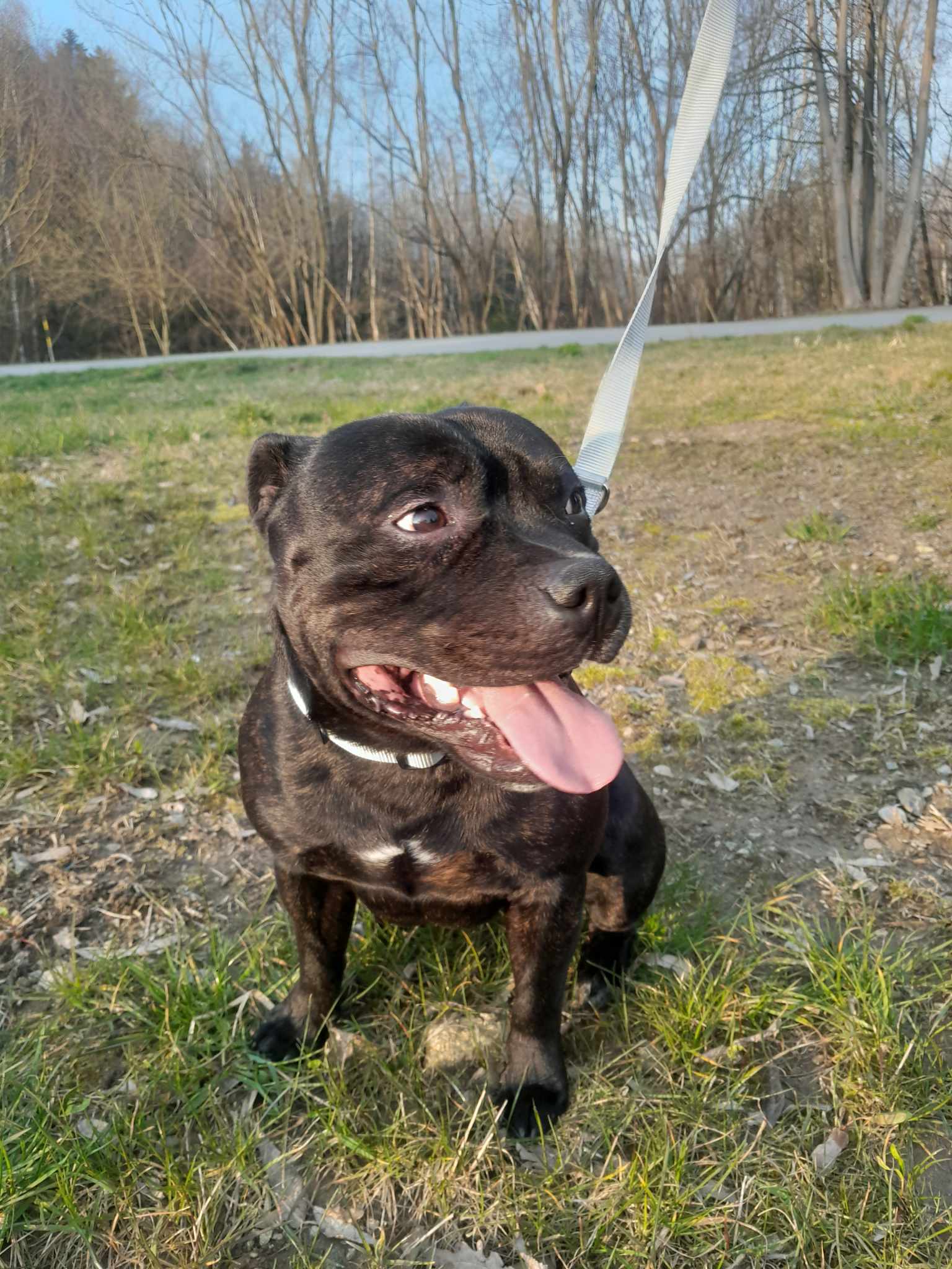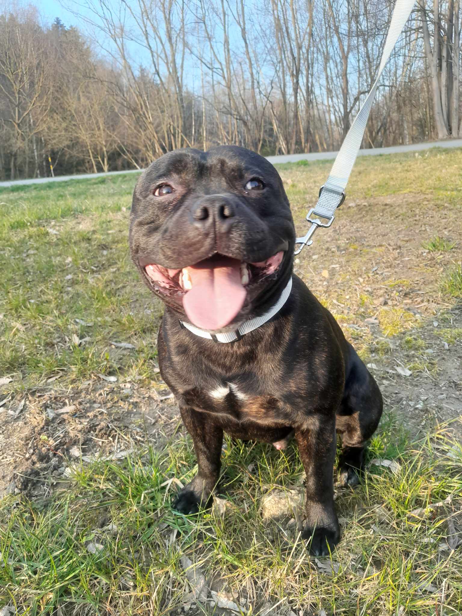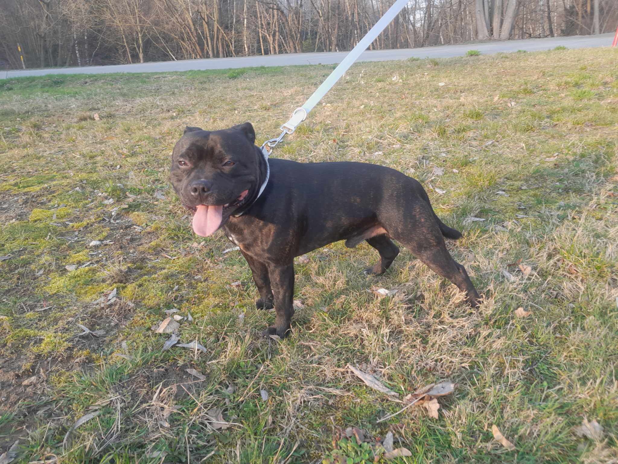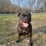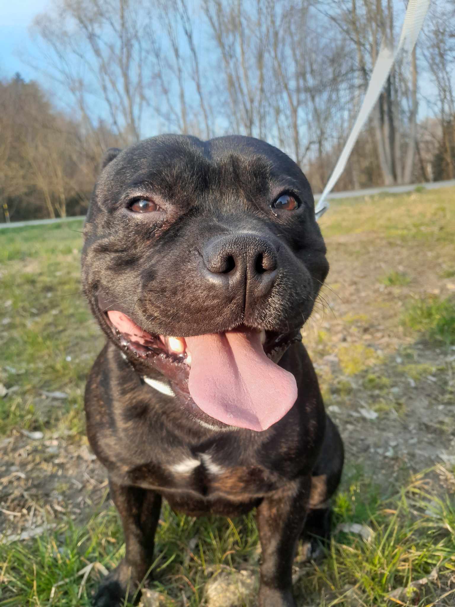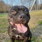 Rocky je roční kříženec staffbulla. Váží něco přes 20 kg. Rocky je vítací přátelský pes, smršť energie, která Vás na přivítanou přátelsky povalí na zem a olíže. Je zvyklý žít v bytě, kde je čistotný, o samotě jen chvíli štěká a poté je potichu, neničí věci. K dětem je také přátelský, jen je potřeba hlídat, aby menší děti třeba nepovalil. Feny a hodné psy zvládá Rocky na potkání v pohodě. Potřebuje ale více socializace, na cizí psy není tolik zvyklý, co se týče bližšího kontaktu. Rocky žil dříve i s kočkou, takže předpokládáme, že by to zvládl i teď, byť po delší pauze.
