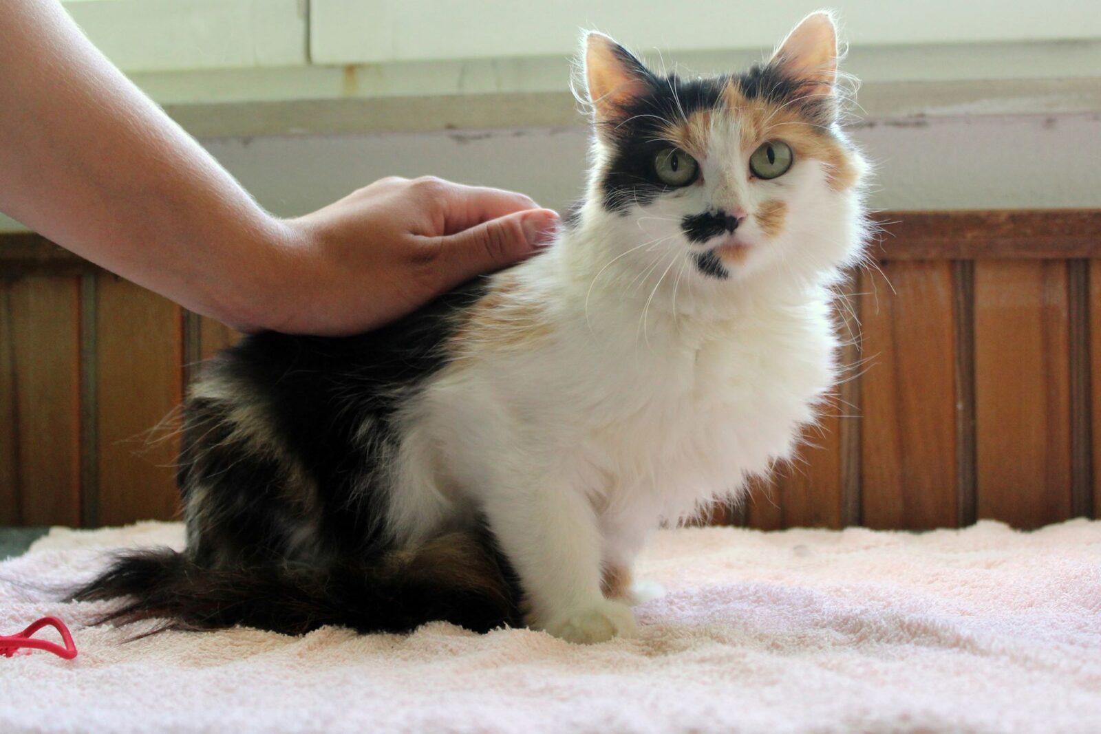 Rozárka je asi roční, barevná kočička. Přijímali jsme jí začátkem srpna spolu s jejími třemi koťátky, které již své domovy našli. Rozárka je velmi jemná a mazlivá kočička, ale potřebuje dostatek času na seznámení s člověkem i prostředím. Není to kočička, která se k cizím lidem pohrne pro pohlazení. Potřebuje trpělivé majitele, kterým nebude vadit, že se bude zpočátku cítit bezpečněji někde v úkrytu. Jakmile zjistí, že jí nic nehrozí, ráda se přijde pomazlit. Čeká ji kastrace a poté bude moci odjet do nového domova.