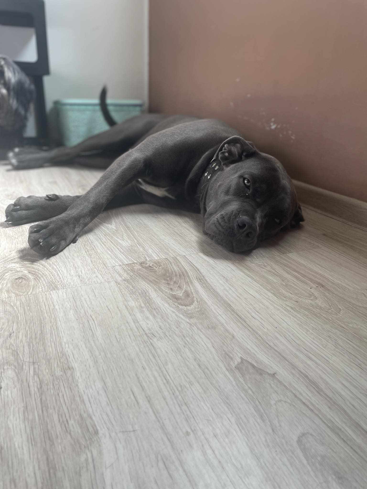 Sofie je 9měsíční kříženka cane corso. Sofinka je zvyklá žít uvnitř, zatím je spíše bázlivá, ale jistě všechno dožene. Nemá problém s ostatními pejsky, fenami ani dalšími zvířaty. S dětmi je také kamarádka.