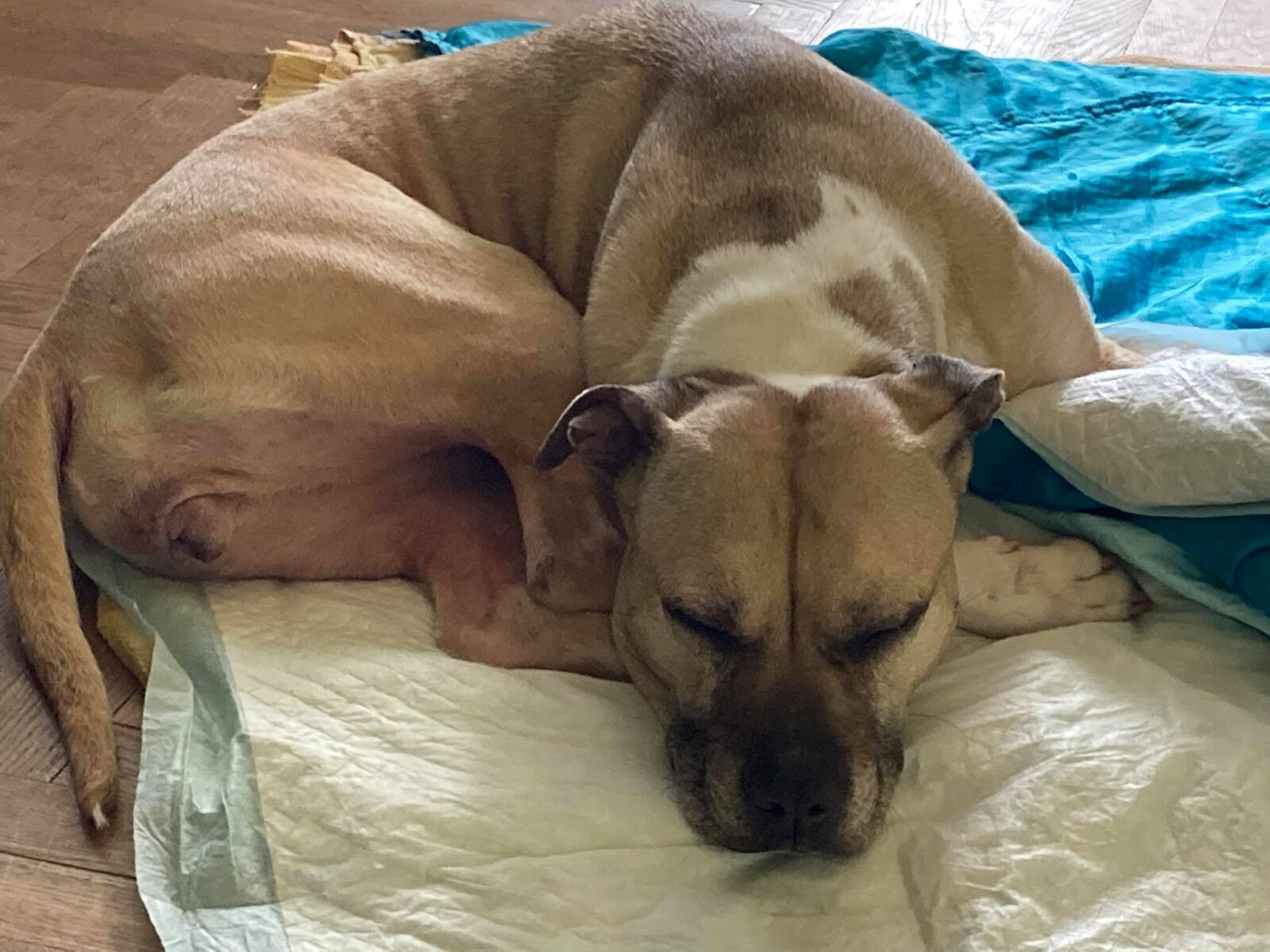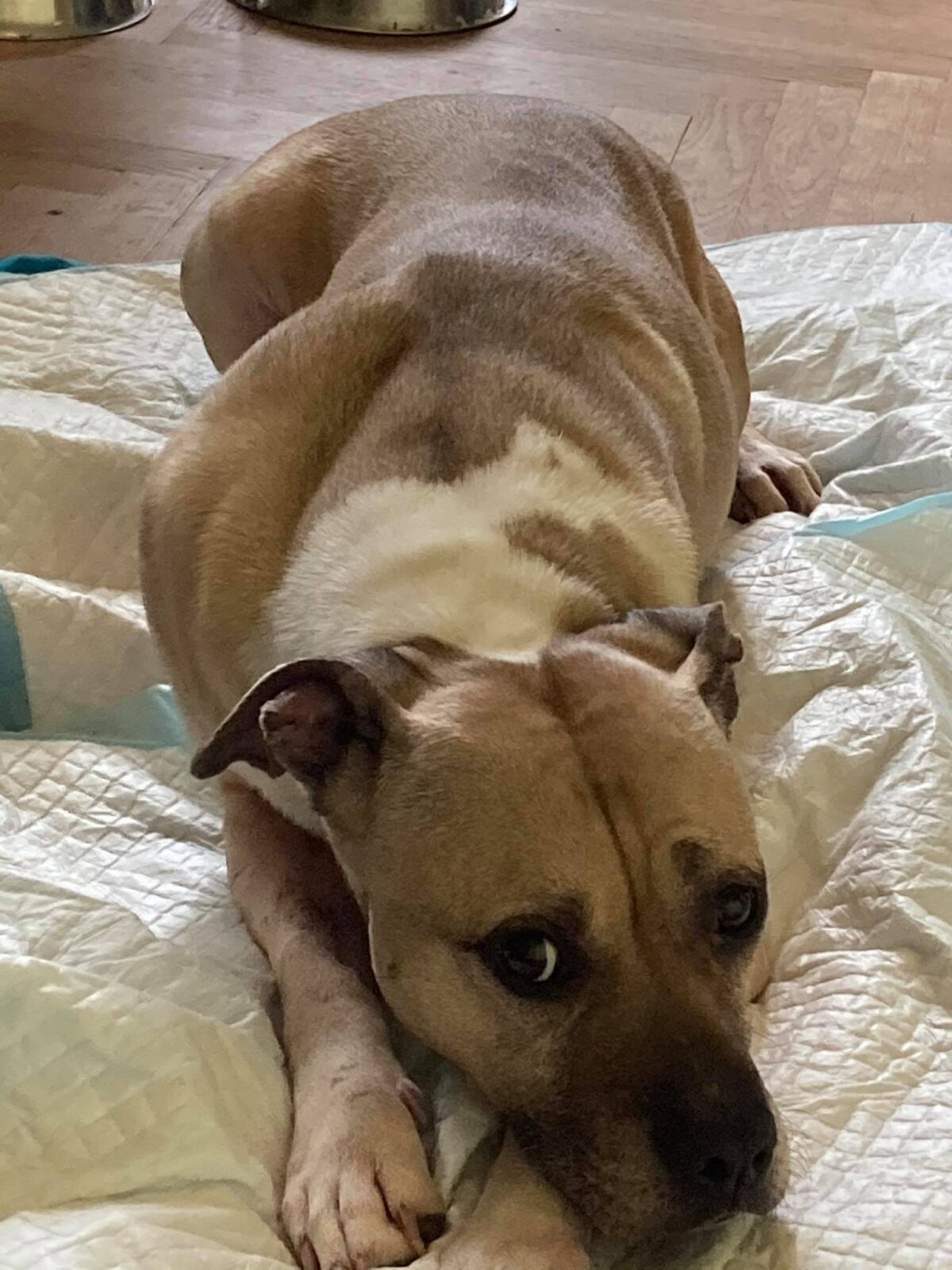 Vendulka je asi 5 letá kříženka pitbula. Dostala se k nám z nevhodných podmínek, kde byla s největší pravděpodobností využívaná k chovu. Kvůli polyneuropatii, která ji postihla již přestala být pro původní majitele zajímavá. Zatím o ní víme jen to, že má obrovské srdce a miluje všechny lidi, kteří se vyskytnou v její blízkosti. Na psy i kočky zatím reagovala vrtěním ocasem. Nejspíš byla umístěna v kotci nebo v nějaké stodole takže hygienické návyky nemá vštípené, ale je velmi učenlivá a snaží se udělat pro člověka vše možné i nemožné. V současné době se nachází na veterinární klinice, kde aktivně rehabilituje a připravuje se na cestu do nového domova.