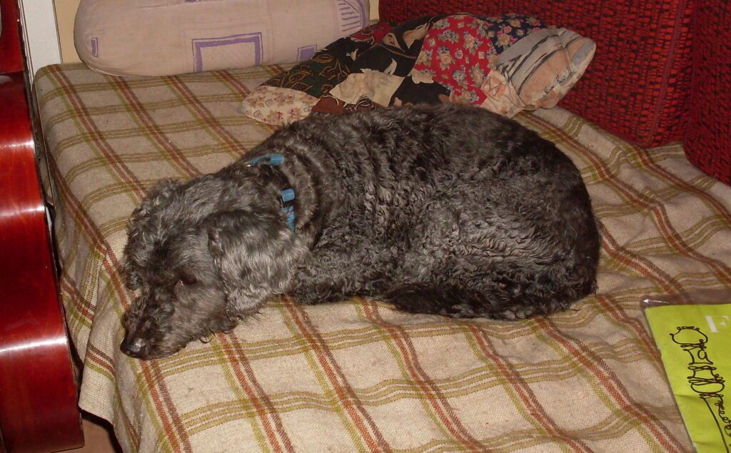 Chundelka byla nalezena v Zachotíně s úplně spečenou srstí. Ocásek měla v dlouhé krustě, kterou táhla po zemi za sebou. Ostřihali jsme jí, nechali zoperovat nádorky na mléčné žláze. Moc ráda a běhala pro klacík a mazlila se.