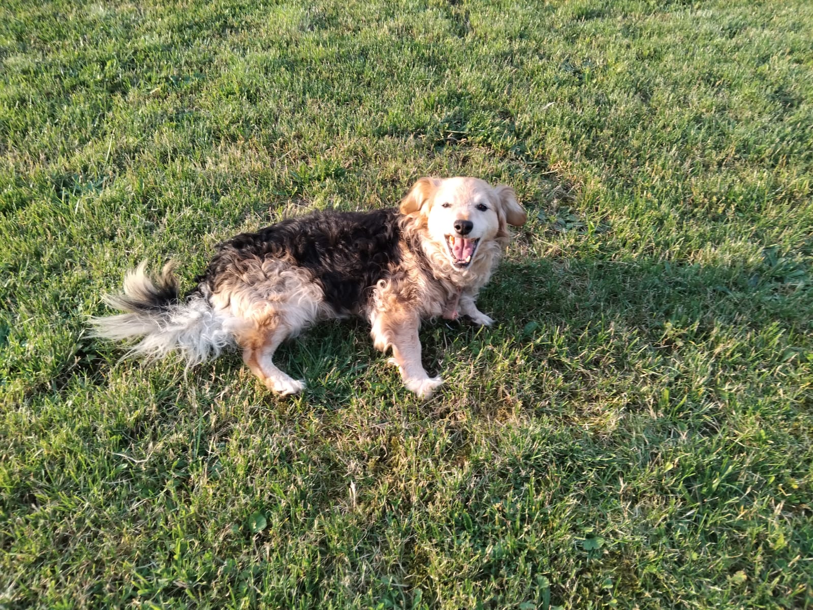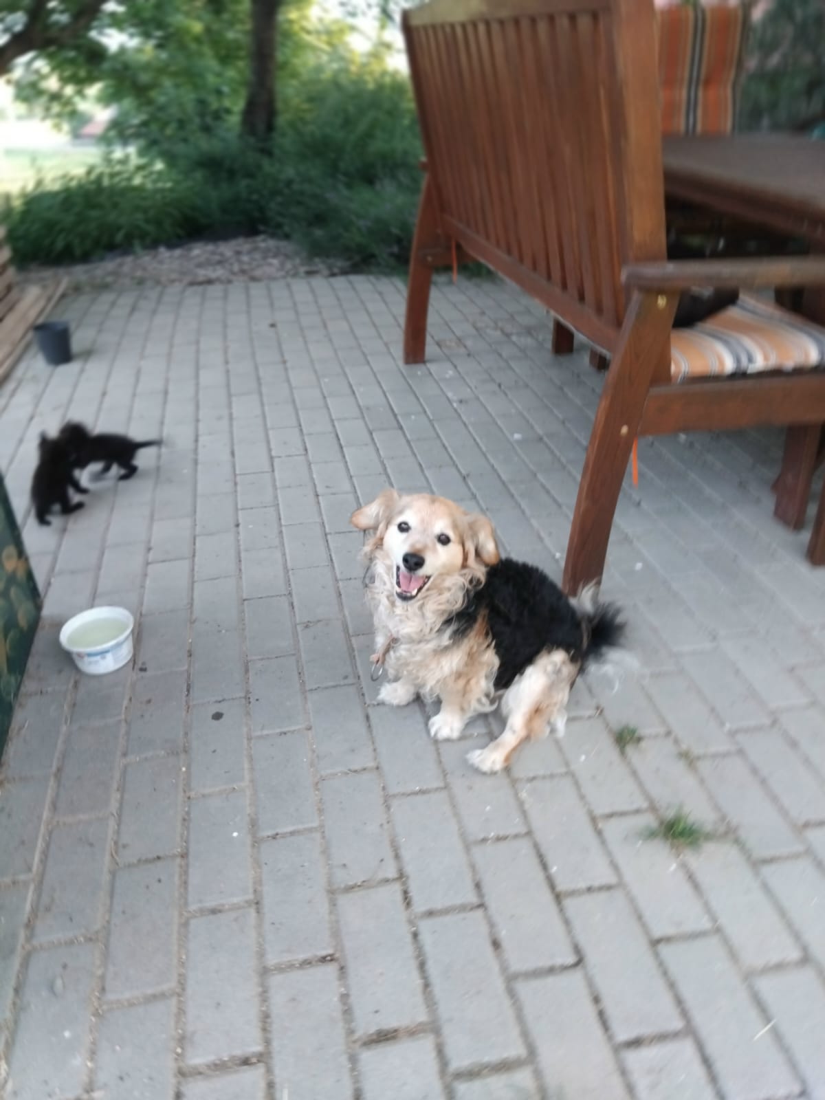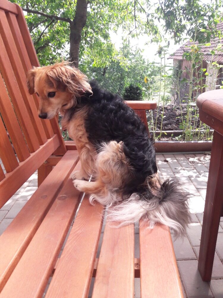 Bimbo bydlí v rodině na statku v Dědkově a dostal nové jméno Ben. Rád se vozí traktorem a s vnučkou pánečků Jessikou je nerozlučný kamarád. Stále, i po letech, si užívá pozornosti pánečků. Už je to starší pan pes, tak si rád pospí v klidu a teplíčku domova.