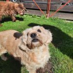 Fenka Cecilka k nám byla přijata z množírny, bohužel se ukázalo, že je březí. Dne 14. 8. 2013 se jí císařským řezem narodila dvě štěňátka. Přesto, že v minulosti již rodila císařským řezem, původní chovatelka ji zřejmě neuhlídala a podle štěňátek lze soudit, že tatínek byl mops nebo buldok, buldoček… Cecilka byla při porodu zároveň vykastrována – měla dělohu přirostlou k močovému měchýři. Vpravo fenečka a vlevo pejsek.