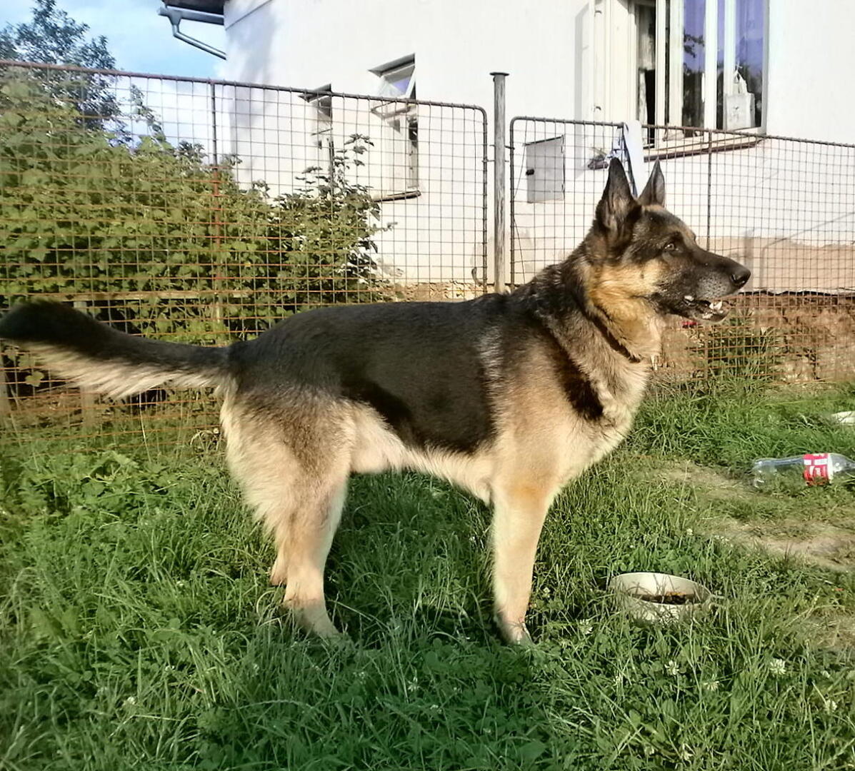 Ajax je osmiletý německý ovčák bez PP, kterému umřel majitel. Je to hodný pes, ale poctivý hlídač, k jehož plotu si nikdo netroufne přijít. Váží 27 kg. Celý život žil v domě a na zahradě se starším pánem. Přestože na procházky téměř nechodili, na vodítku chodí velmi pěkně a na svůj věk se dobře učí základní povely. Ajax je naprosto snášenlivý s ostatními fenami, nemá problém ani se psy, pokud po něj vyloženě neútočí nebo ho dlouho neprovokují. V domácí smečce se snaží zaujmout čelní postavení. Kočky a hospodářská zvířata absolutně ignoruje, neprojevují se u něj žádné lovecké pudy. Patrně proto, že celý život přišel do styku jen s jedním člověkem, důvěru k cizím lidem si získává pozvolna. U nás už je jako doma, moc a moc rád se mazlí a hlavně nechce být sám – kam se hnu, tam jde za mnou. Kdyby mohl, vleze i do postele. A má hrůzu z veterináře – očkování je pro něj trauma a brání se zuby nehty.
