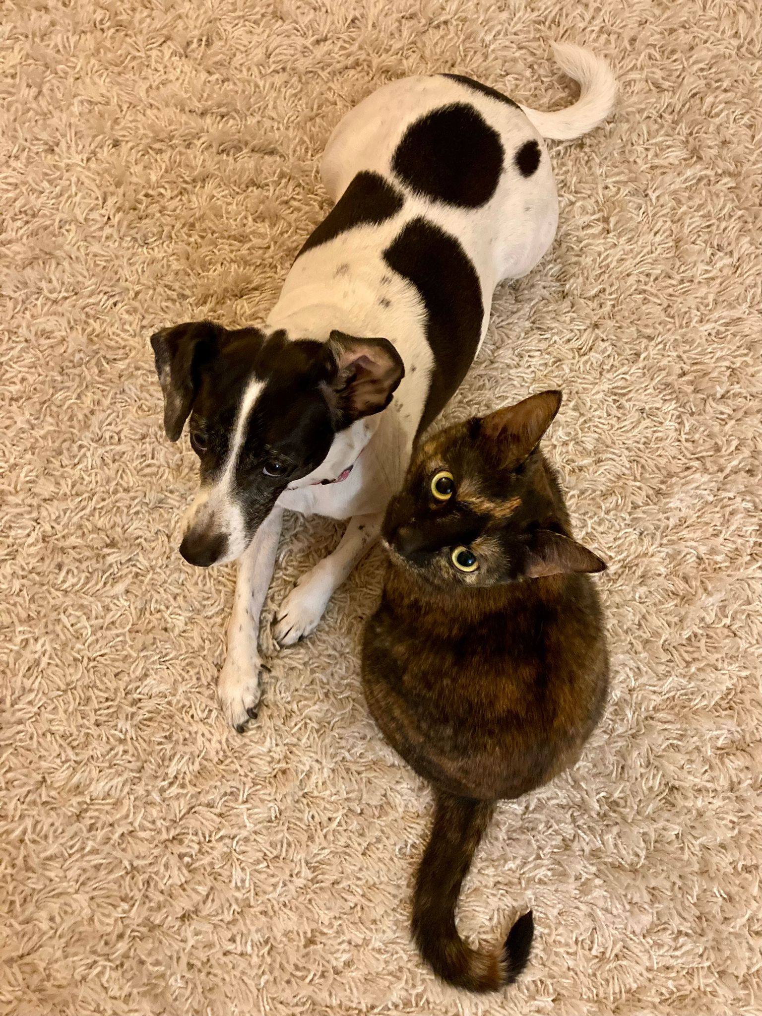 Štěňátka jsme odebrali od sociálně slabšího člověka – napůl bezdomovce, který vlastní asi 4-letou fenku a ta má každé hárání štěňátka. Ta je nyní u nás, po kastraci a pooperační péči bude vrácena majiteli. K adopci jsou tedy čtyři štěňátka – dvě fenečky Cácorka a Cecilka a dva pejsci Coudy a Cyrilek. V dospělosti budou mít max. 8 kg. Jsou velmi vděční za pozornost a pohlazení, ale zároveň se velmi bojí. Potřebují co nejdříve individuální péči někoho, kdo má již zkušenost a trpělivost s pejsky Nemají problém se společností jiného pejska, naopak ji vyhledávají. Kočičky ignorují, neprovokují. Domácí zvířata – kozy, slepice, králíky ignorují.