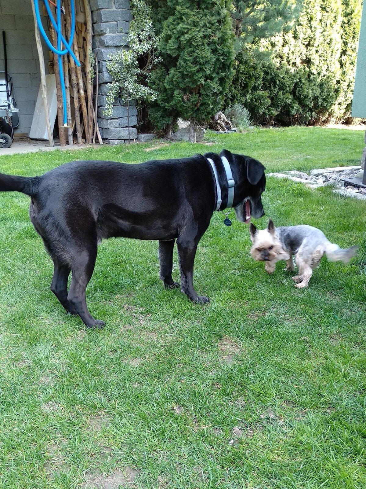 Asi šestiletí labradoři hledají urychleně alespoň dočasný azyl nebo trvalý domov. Majitelé se dostali do komplikované situace a psi mohou mít pouze na WC. Pes je černý s bílou náprsenkou, vytrvalý aportér, energický a živý. Oba zvyklí na zahradě u domu.