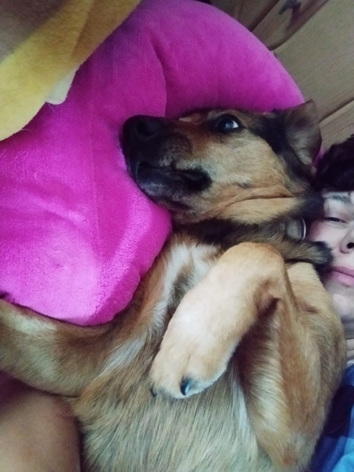 Baron je asi tříletý aktivní kříženec. Váží 16 kg a měří 45 cm v kohoutku. Zakempoval u jedoho domu v Kejžlici, po třech dnech jsme ho dovezli k nám. Baron uměl z dřívějška dobře základní povely včetně chůze u nohy, evidentně je zvyklý v bytě, má hygienické návyky a je zvyklý cestovat autem. Dobře se snese se vším živým, jen na kočičky štěká, ale chce být s nimi kamarád. Děti má rád. Lépe vychází se ženami, některých mužů se bojí. Miluje dlouhé procházky.