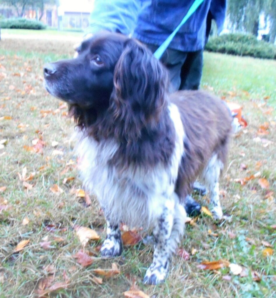 Odchycen dnes v 17 h v Sadech v Pelhřimově. Malý musterlandský ohař, téměř nečitelné tetování v uchu, starší pes.