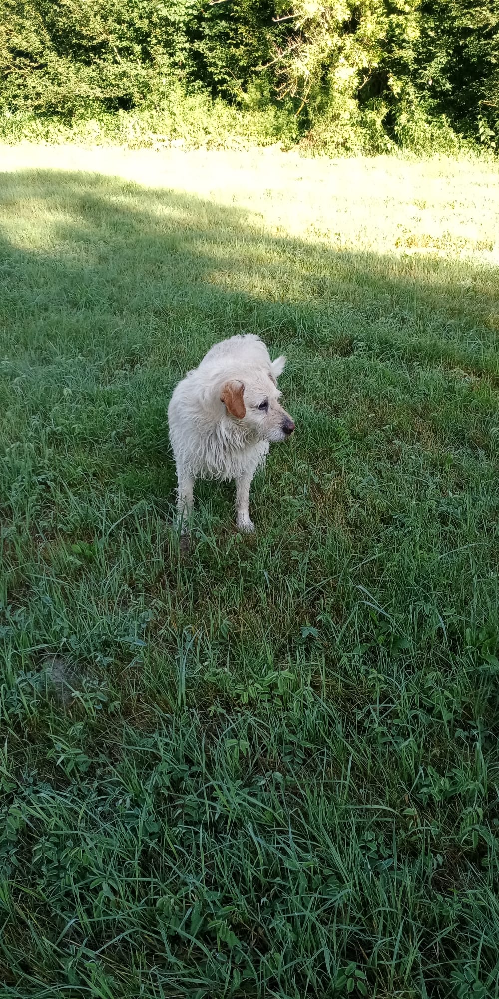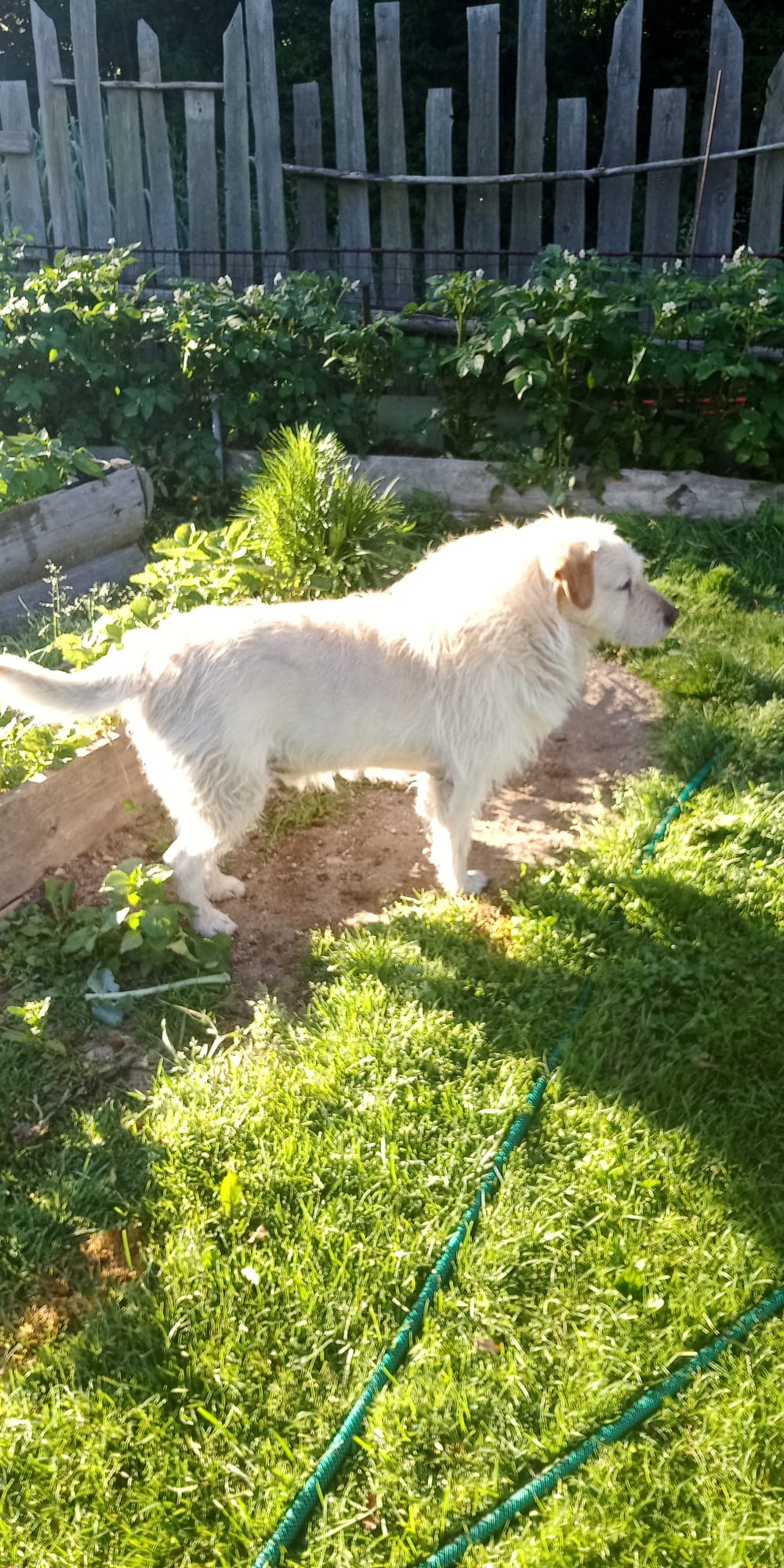Cézar je asi roční kříženec labradora. Váží asi 30-35 kg a v kohoutku měří 50 cm. Je to velmi hodný a milý pes, má rád děti, lidi a je zvyklý i na jiné psy. Slepiček si nevšímá. Je to stále ještě štěně, které vyrostlo v romské osadě, takže je nepolíbený výchovou a miluje volnost. Nejšťastnější by byl za zahradu a za páníčky co se mu budou věnovat. Na zahradě se chová jako správný hlídač, ale pokud to není nutné, zbytečně neštěká. Má rád vodu a procházky. Na vodítku chodí vzorně, ale zatím ho velmi lákají jiní psi. Okamžitě se fixuje na svého pána, nemá tendence utíkat, ani ze zahrady. Zatím má mírnou nadváhu.