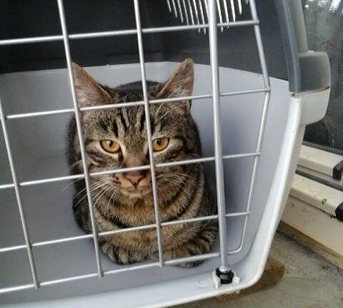 Kocourek byl nalezen dne 8.12. V Pelhřimově poblíž nemocnice u hlavní silnice. Naskočil nálezkyni do auta a nechtěl vystoupit.