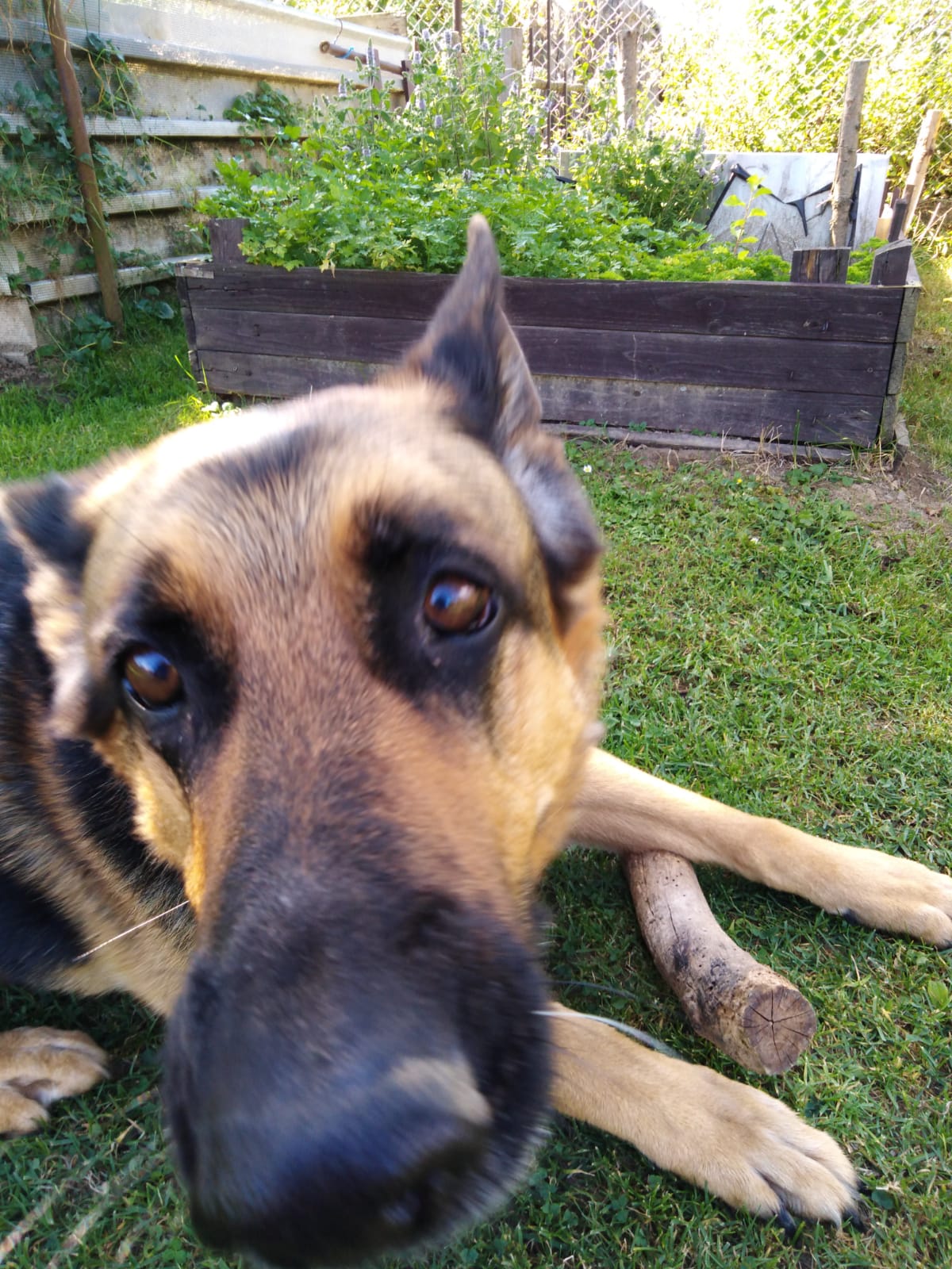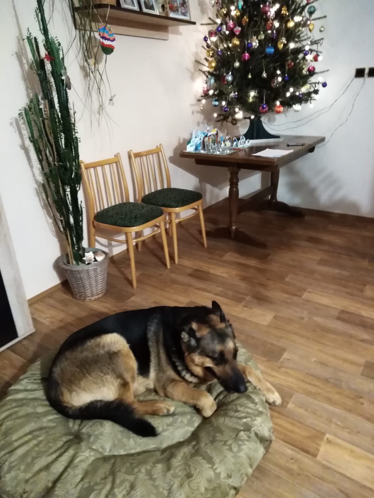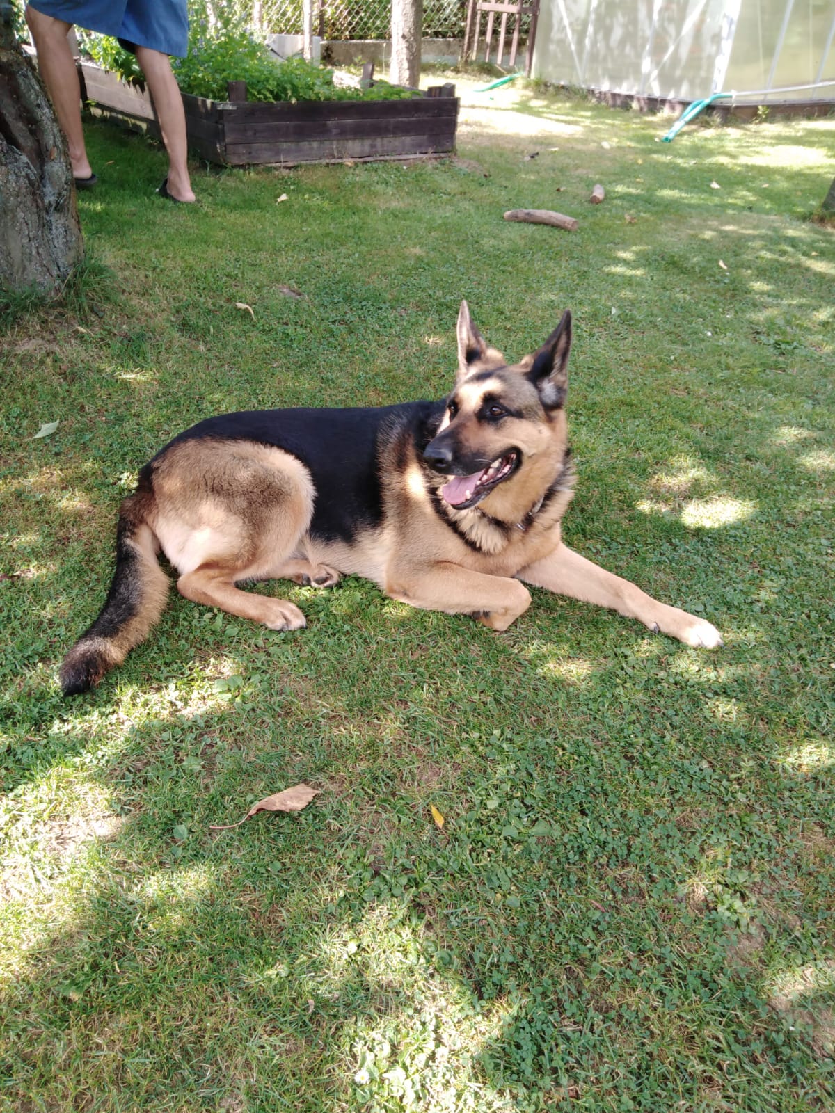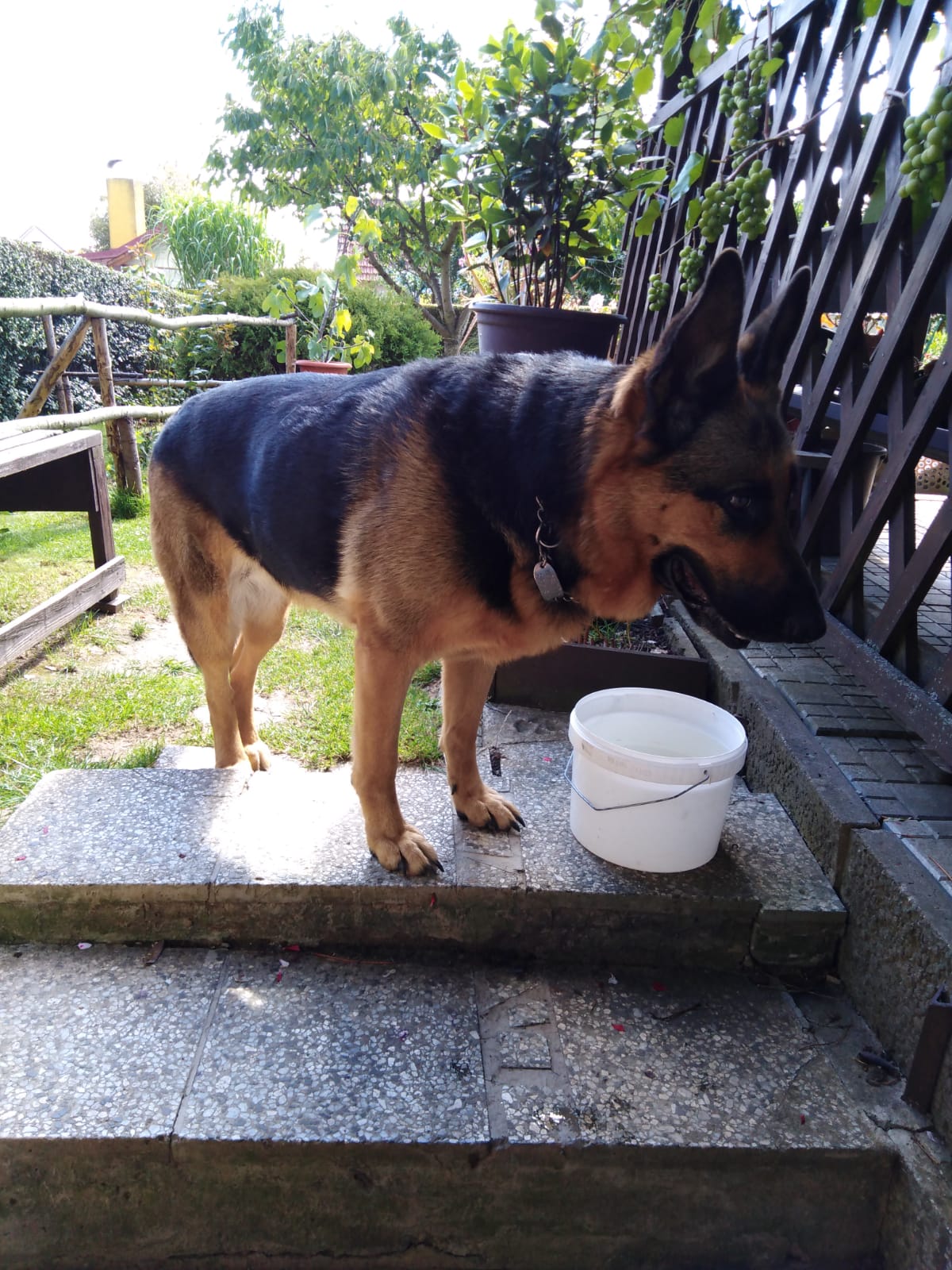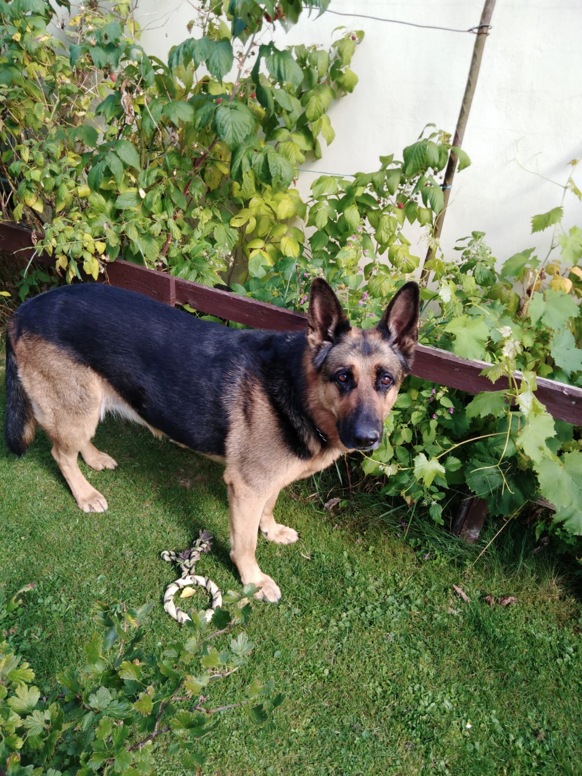 Aischa je cca roční kříženka německého ovčáka. Váží 38 kg a měří 58 cm v kohoutku. Je to temperamentní a hravá fenka, miluje aport a lidskou pozornost.