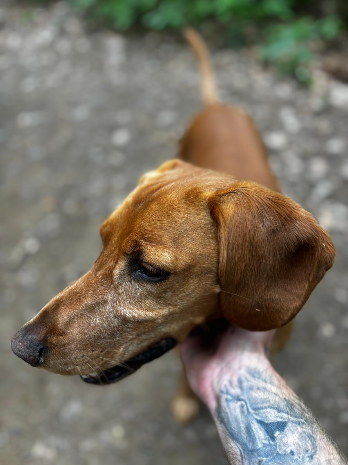 Arámek je dvouměsíční kříženeček kokršpaněla a možná maďarského ohaře. V dospělosti bude mít kolem 13 kg. Veselý, aktivní, zvědavý štěník, výborný k dětem a zvyklý v naší smečce – takže zvyklý na všechno. Nalezený 69. 2. 2017, údajně v krabici od banánů s promoklou dekou u popelnic – Pelhřimov, Humpolecká ul.