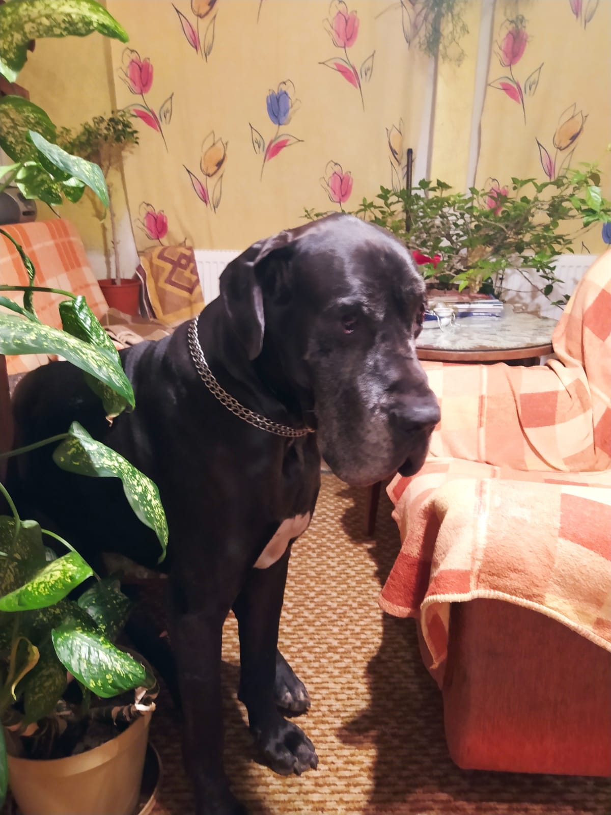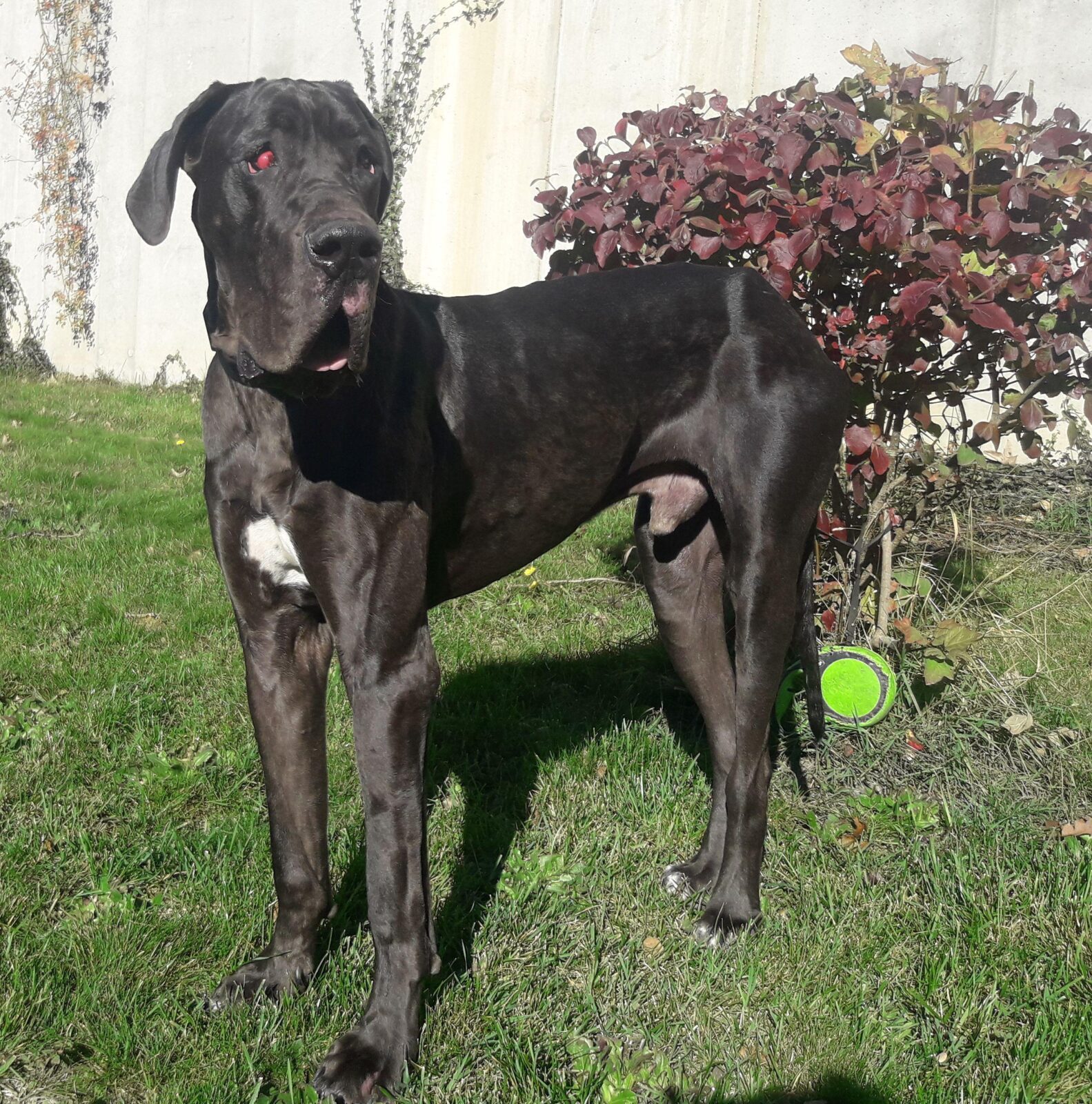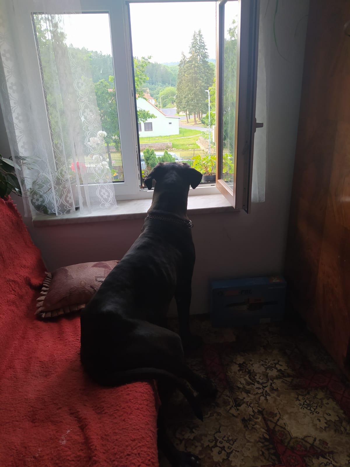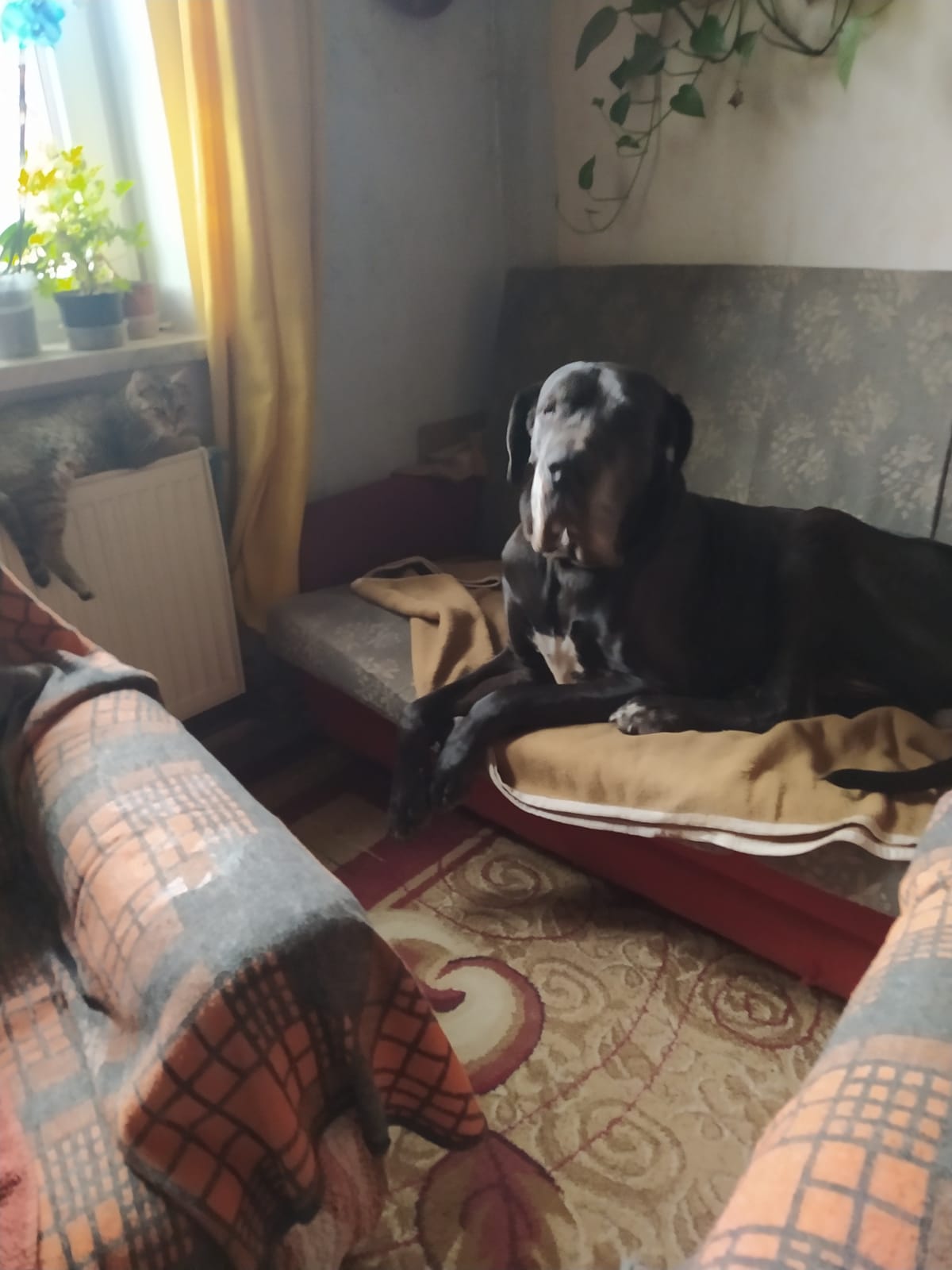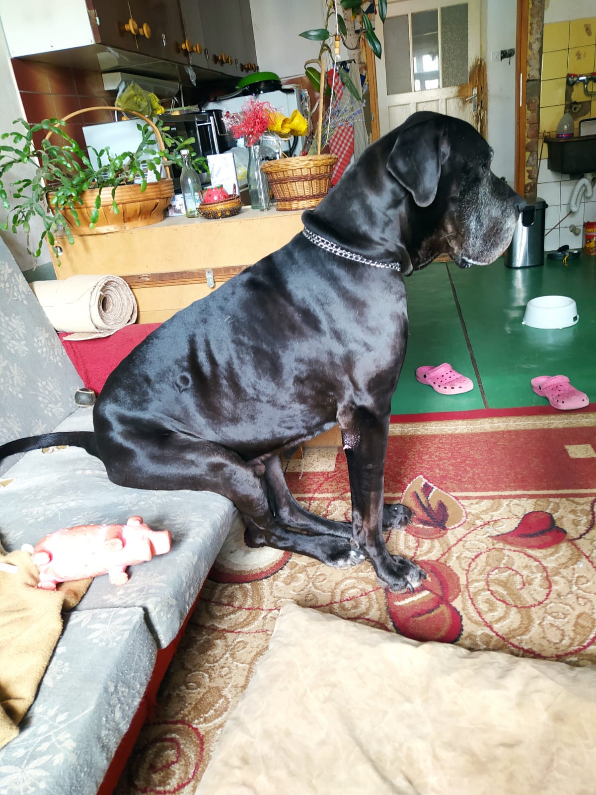 Atila je dvouletý kříženec německé dogy. Váží 50 kg a měří cca 90 cm v kohoutku. Atilův původní pán se dostal do tíživé situace a svěřil jej neznámým lidem, kteří ho několik dnů opatrovali. Kontaktovali nás s tím, že: „Atilu dostali od neznámého bezdomovce v Praze, který se jim svěřil, že ho nedokáže zaopatřit a na ulici jim Atilu nabídl a dal. Atila má nemocné oči a trpí podvýživou“. Po několika dnech původního majitele potkali dočasní pečovatelé znovu, Atila se k exmajiteli rozběhl a pán bez domova prohlásil, že ho chce zpět a tak mu ho vrátili. Po pár dalších dnech se ozvali úplně jiní lidé, že jim Atilu svěřil jeho pán, který si ho měl vyzvednout, ale nevyzvedl a požádali nás o jeho zaopatření. Ještě ten večer byl Atila přijat k nám. Prvních 10 minut se bál, pak zjistil, že je nás tu hodně a tak byl a je veselý. Nyní je po operaci očí, bere léky a pozvolna se hojí.