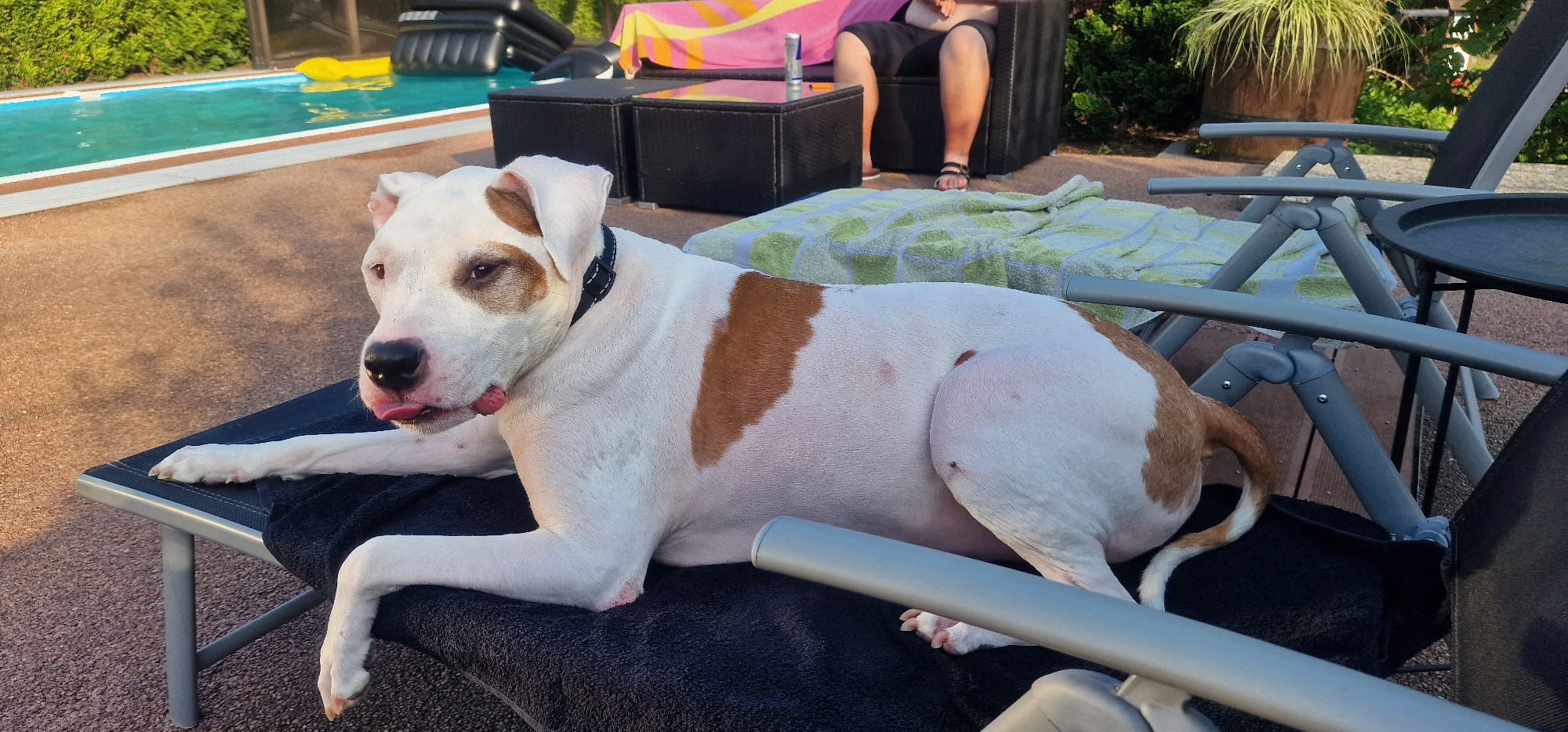 Atrey je roční kříženec amerického stafordshirského teriéra. K lidem a dětem naprosto bezproblémový, miluje jejich společnost. S fenkami si hraje, má je rád, snese kastrované malé psy, jinak se psími kluky nevychází. Zvyklý na pobyt uvnitř, nicméně je třeba počítat s jeho velkou potřebou být se svým člověkem.