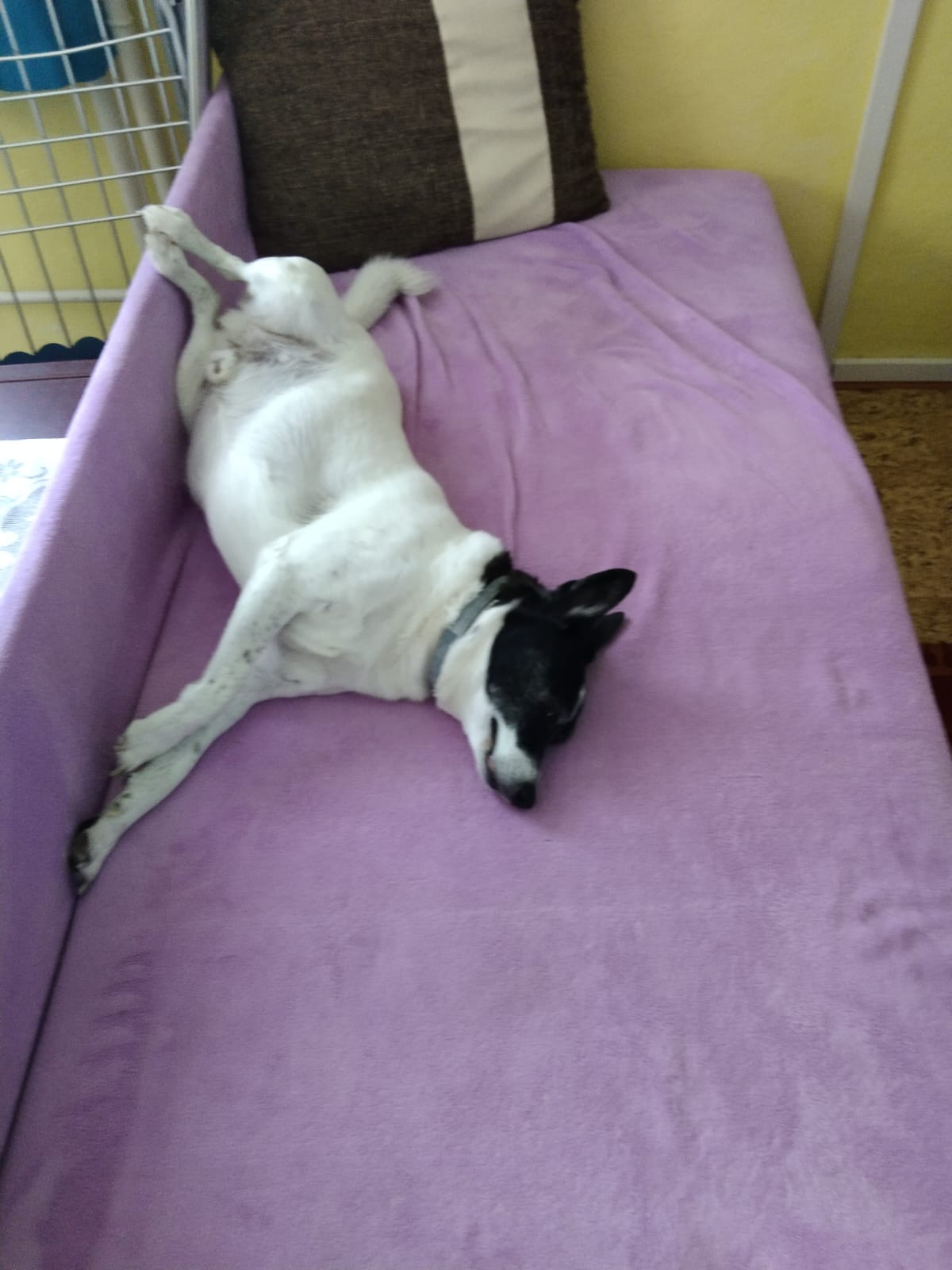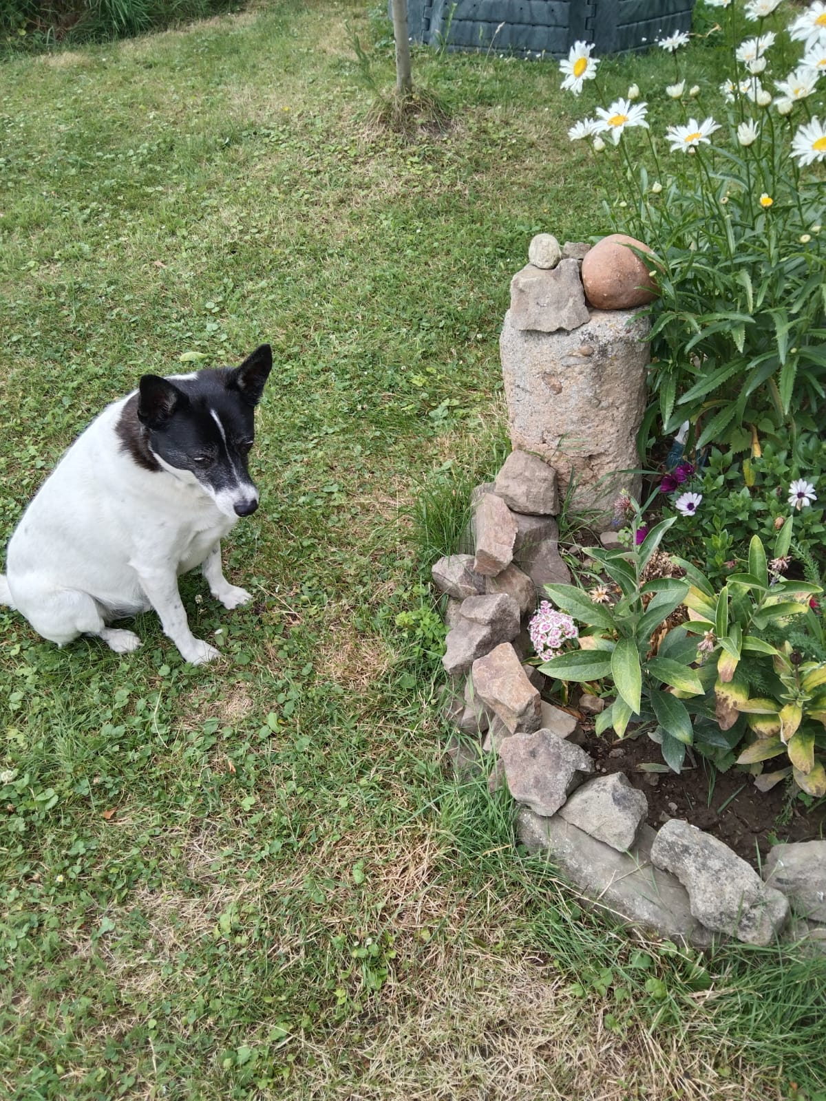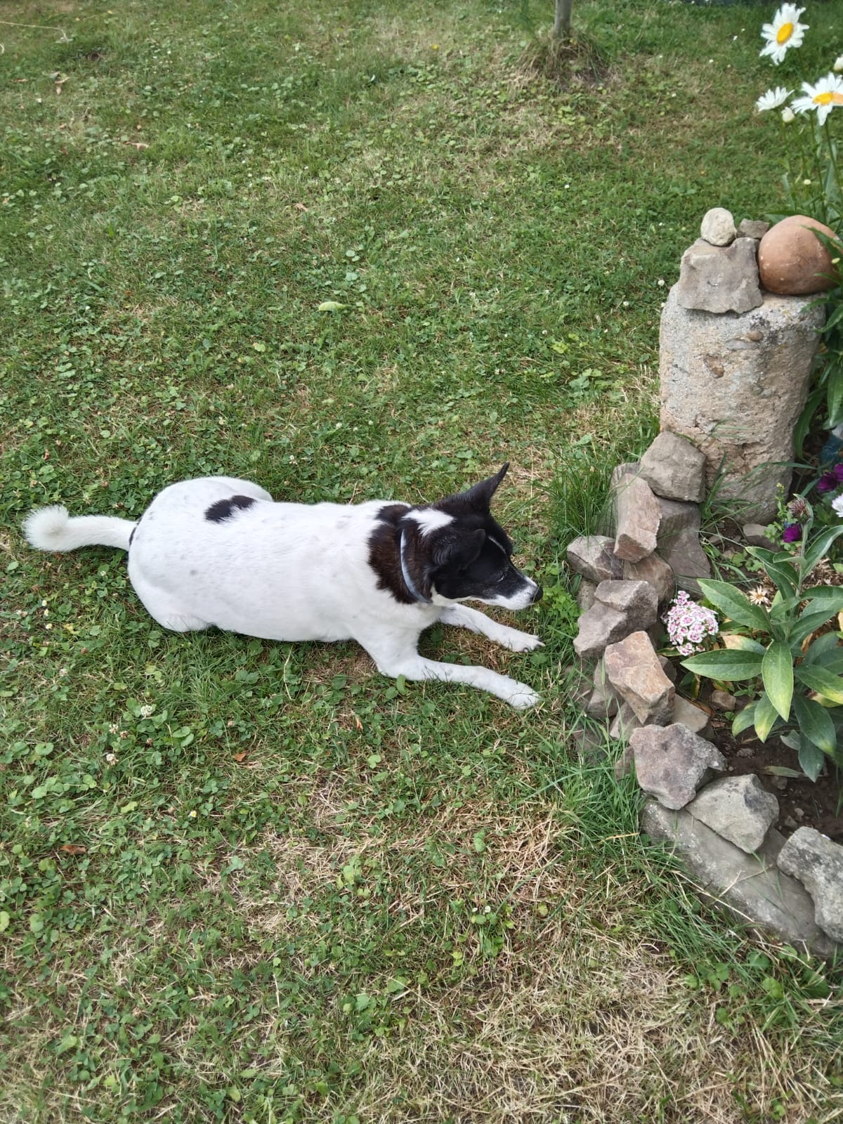 Coffee našel nový domov u staršího páru v Rusíně, kde běhá po zahradě, hrabe myši a je to velký mazel.