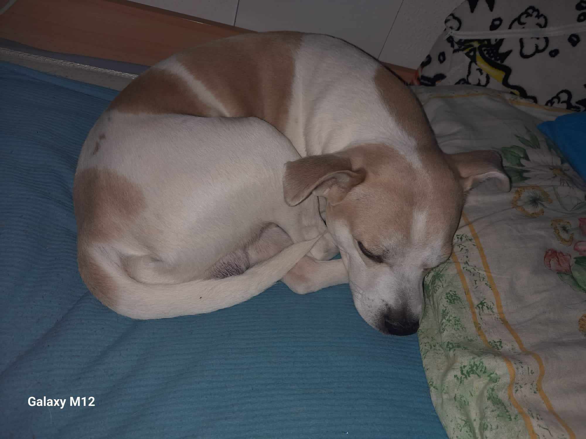 Diorek je dvouměsíční veselé štěně. V dospělosti bude mít kolem 10 kg. Byl nalezen promrzlý v Humpolci, plný škrkavek. Je to synek Hedy a Badyánka, jak jsme se později dozvěděli.