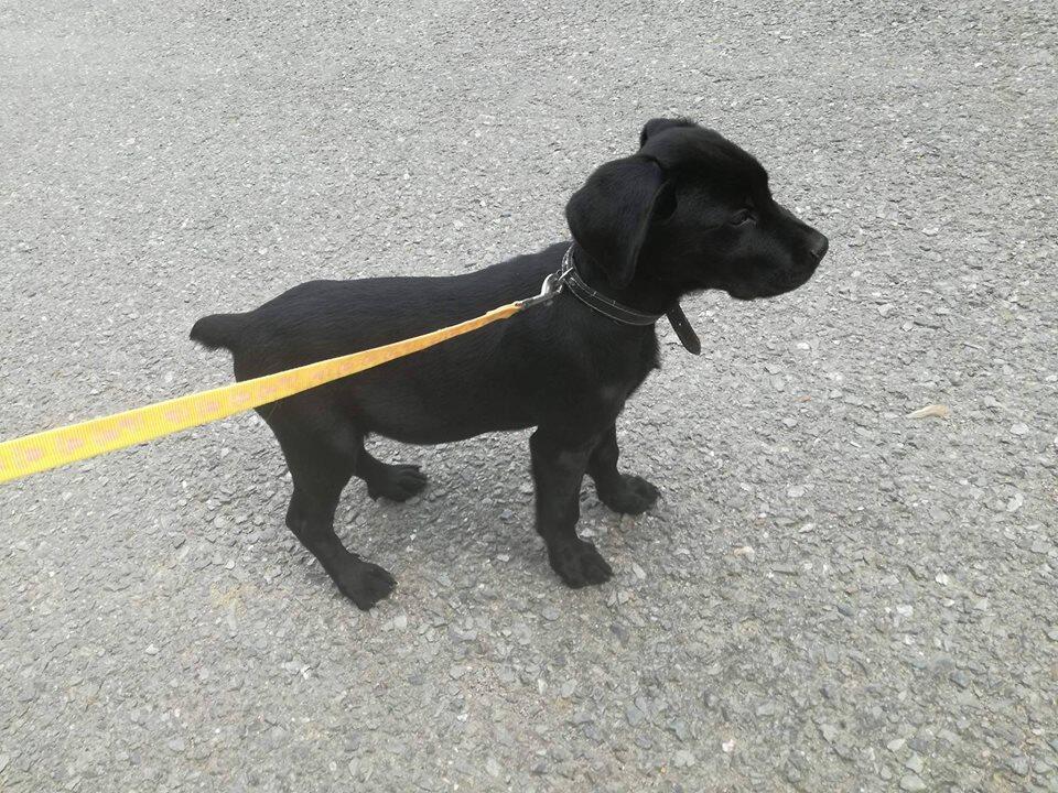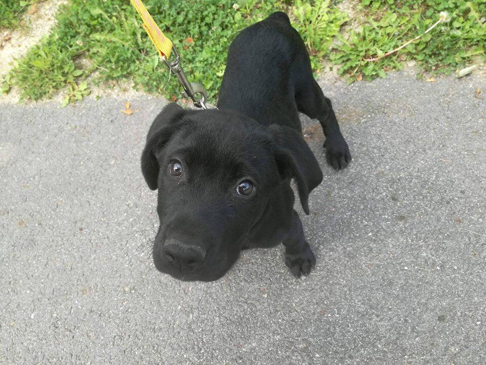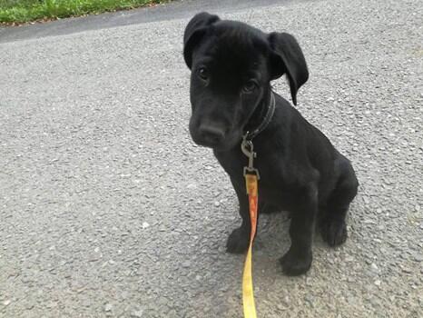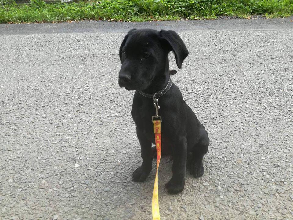 Dustinek je asi 3-4 měsíční štěně křížence. Nyní váží necelých 10 kg, v dospělosti bude spíše většího vzrůstu. Je to veselé aktivní štěně.