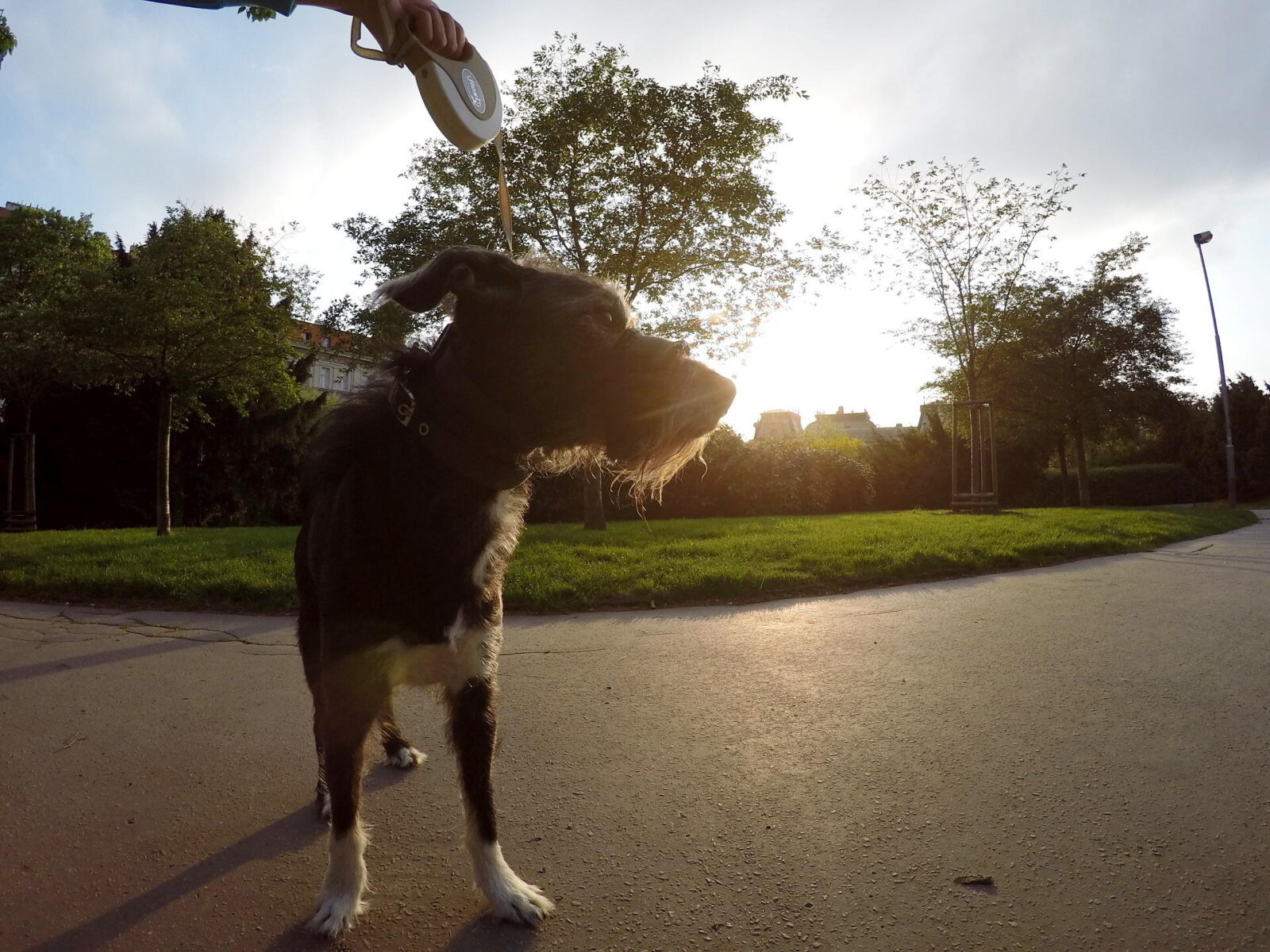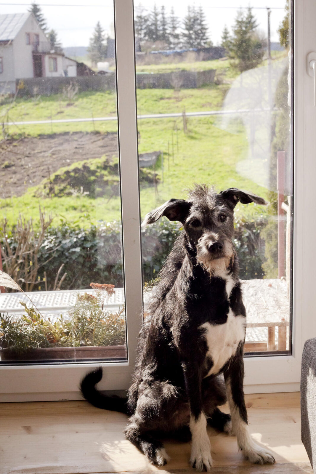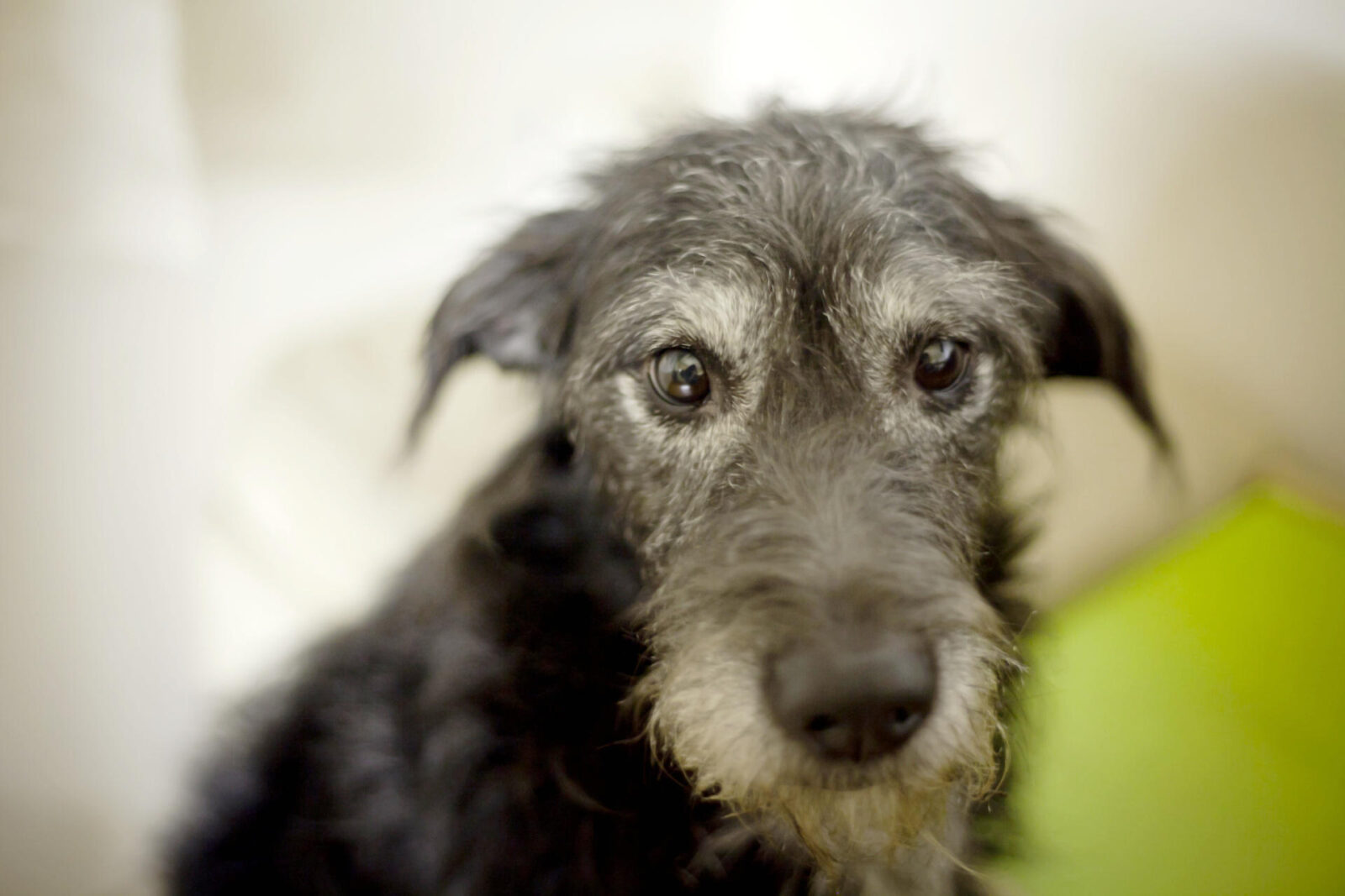 Justin je 10 letý kříženec chrta a středního knírače. Váží 12 kg a měří 45 cm v kohoutku. Je to domácí střapatý elegán, naučený čistotě a dobrým bytovým mravům. Doma se rád oddá dobrému jídlu a spánku, zatímco venku je plný sil, ve výborné kondici, všechno ho zajímá a občas zatáhne na vodítku, ale převážně jde pěkně u nohy a zvládá běžné základní povely. Má rád děti i dospěláky, je velmi přátelský. Fenečky má také rád, pejsky si vybírá.