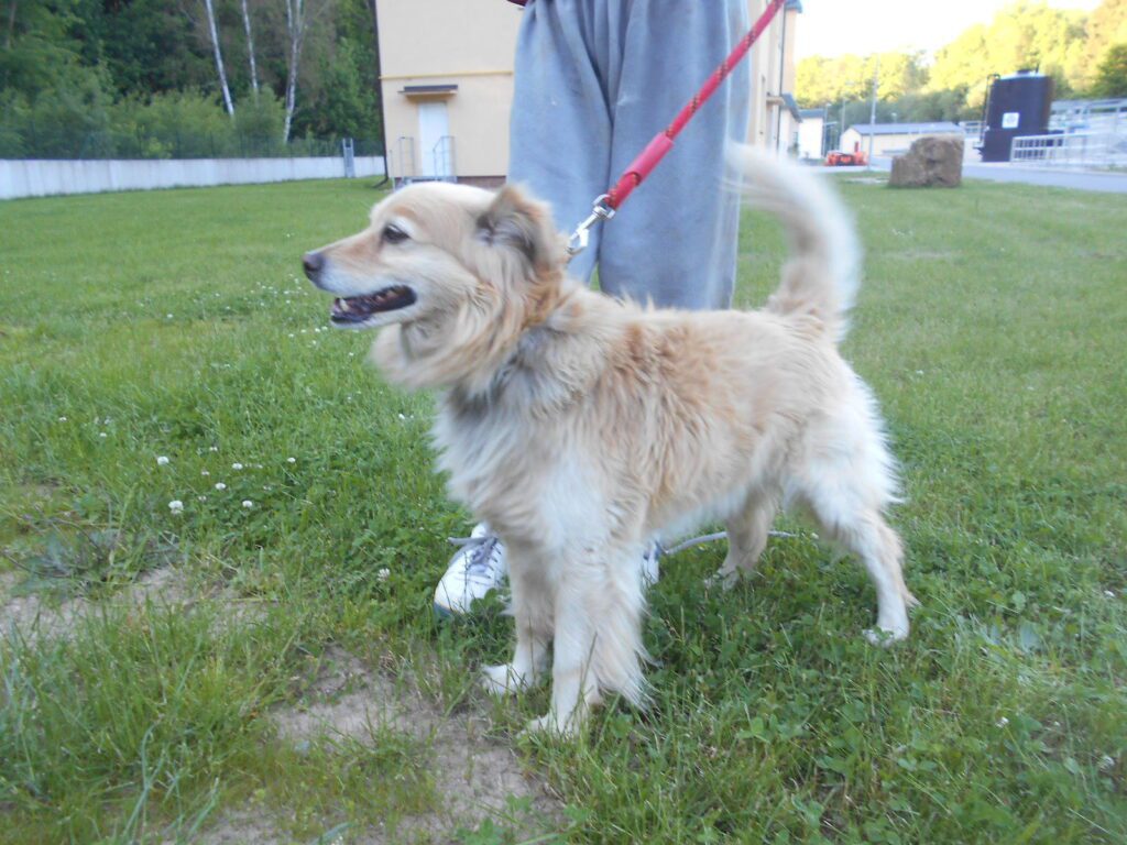 Střední kříženec, hodný, středního věku – odchycen 28. 5. 2017 u Stráže.