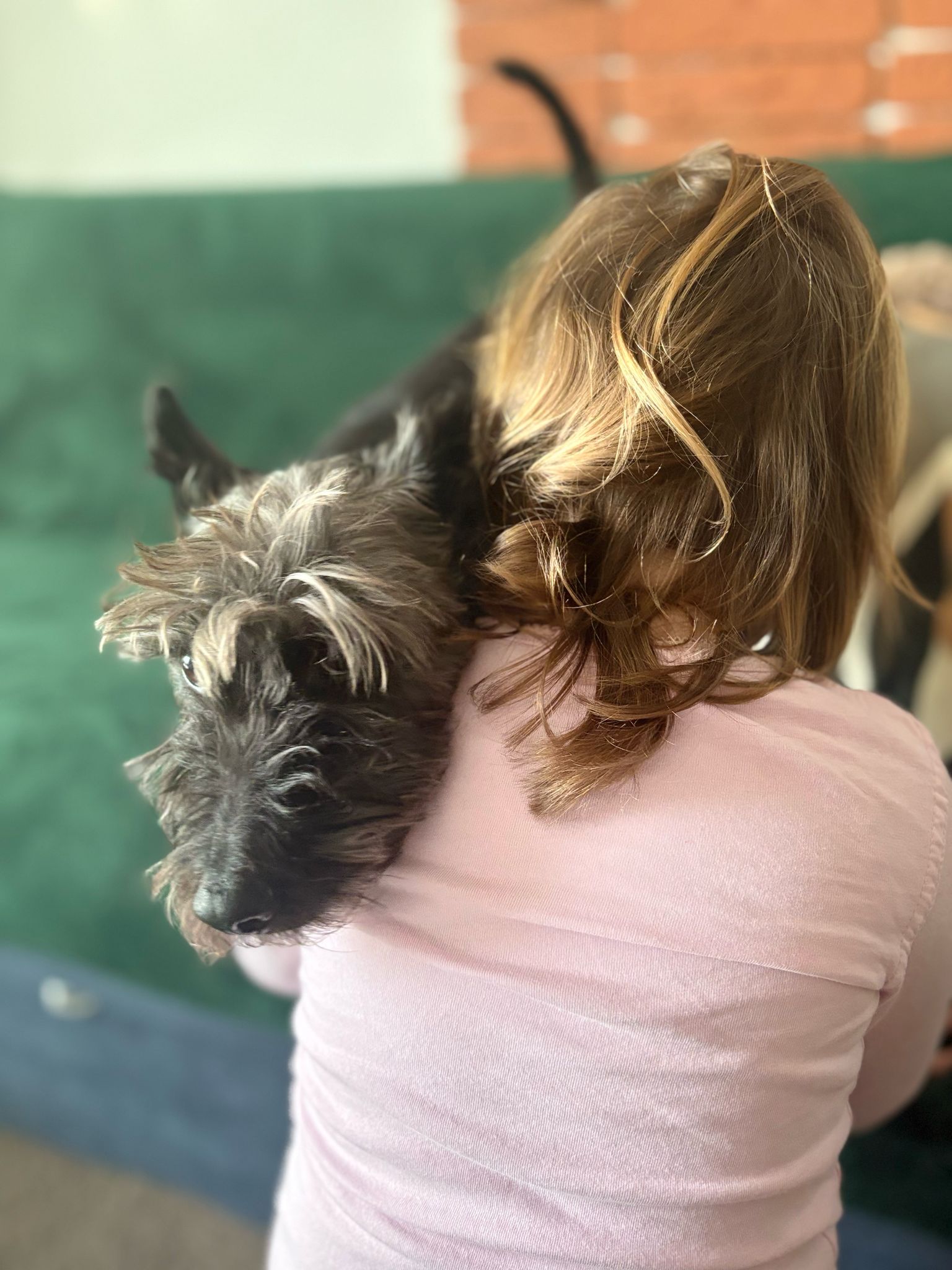 Pupík bydlí s novými páníčky a psími kamarádkami v Černově. V novém domově se má báječně! Miluje obě malé paničky, užívá si společných procházek s kočárkem a je prý úžasná chůvička.
