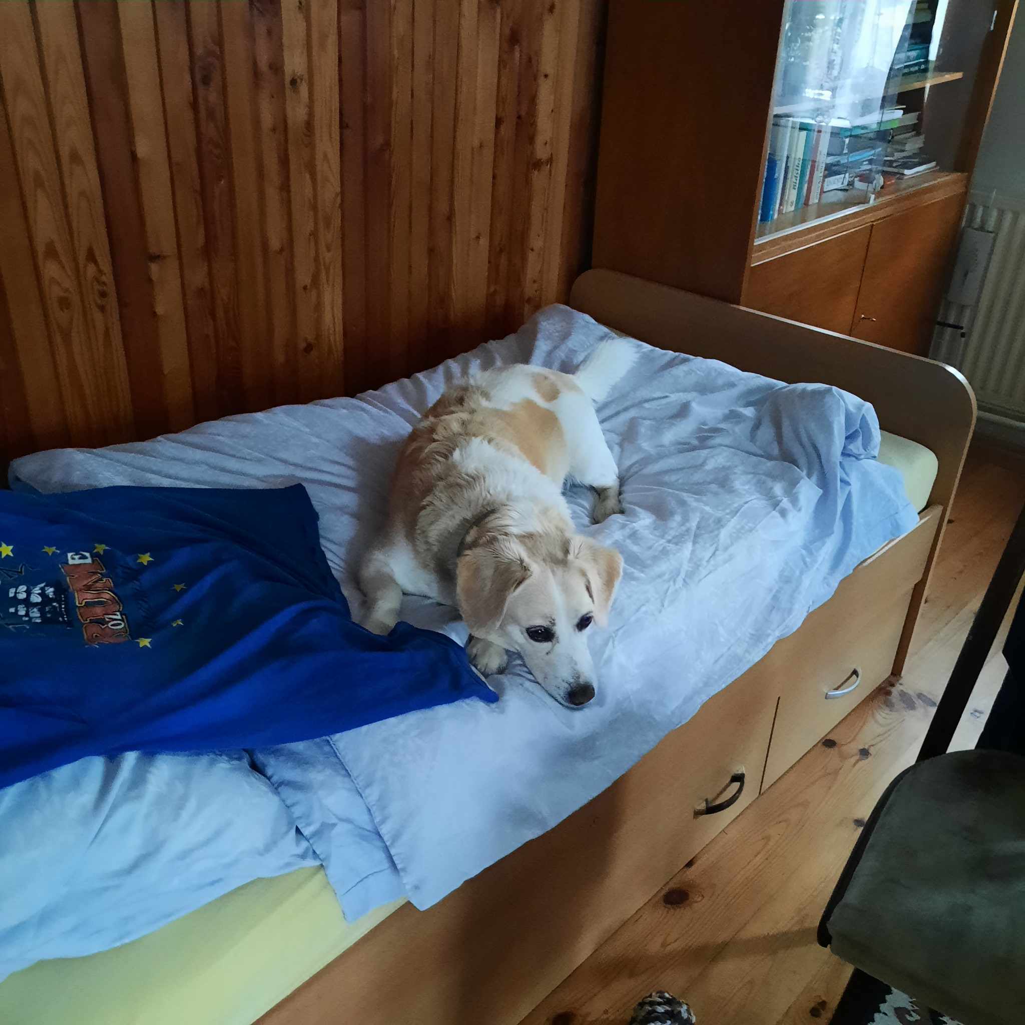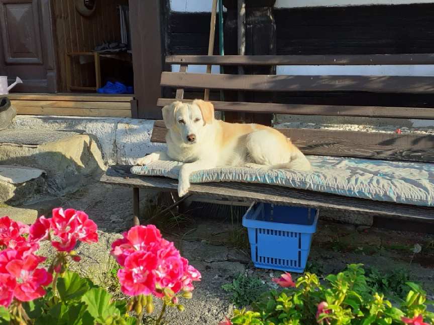 Beth našla nový domov v Praze a má se královsky. Většinu času tráví na chalupě se dvěma kočičkami a je moc hodná a spokojená.