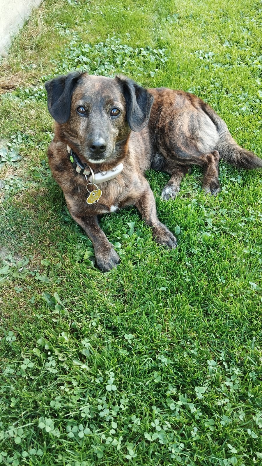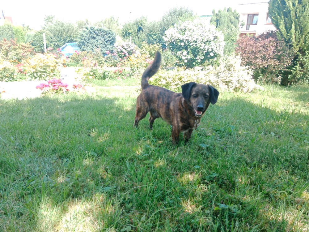 Bugsy našel nový domov v Božejově. Páneček nám píše: Bugsy si myslím, že se má dobře a je spokojený. Je na nás docela závislý. Jak se člověk někam hne, tak jde za ním. Ale všechny nás má rád.