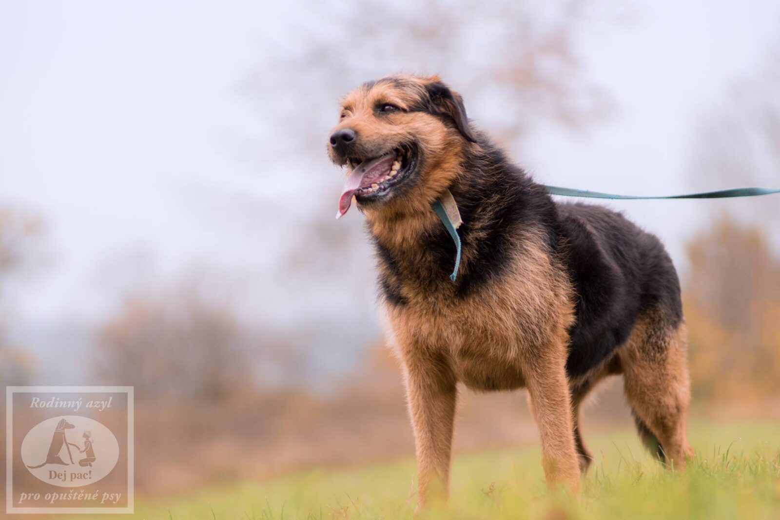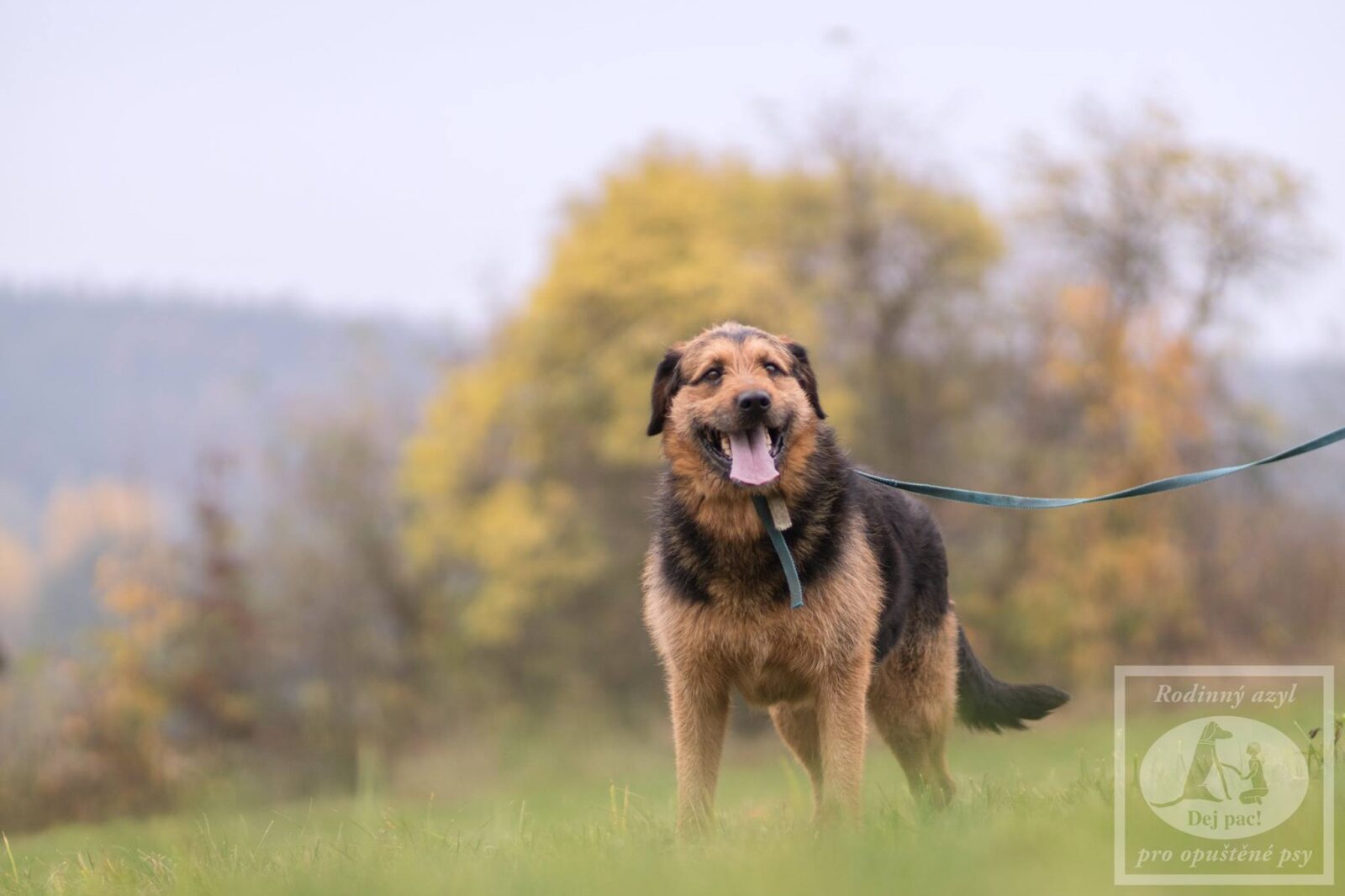 Chlup je asi 6 -7 letý kříženec německého ovčáka. Váží 28 kg a měří 50 cm v kohoutku. Chlup je šťastný pes. Je štastný prakticky kvůli všemu a velmi evidentně. Miluje lidi a děti, je neskutečně mazlivý a oddaný. Házení klacků a čehokoliv ho dokáže bavit dlouhou dobu. Perfektně chodí na delším vodítku. Zná základní povely. Dřívějším majitelům občas utekl, ale není zřejmé, zda proto, že by byl samostatný nebo proto, že se mu nevěnovali. U nás chodí na stopovačce nebo na volno, ale v lese se rád proběhne po srnčí stopě. Sice to při své zavalité postavě po pár minutách vzdá, ale i tak není vhodné ho v lese nechat rejdit volně. Chlup byl nalezen dne 7. 12. v Pelhřimově u Strachovských rybníků, majitel byl dohledán, ale psa vrátit nechce.