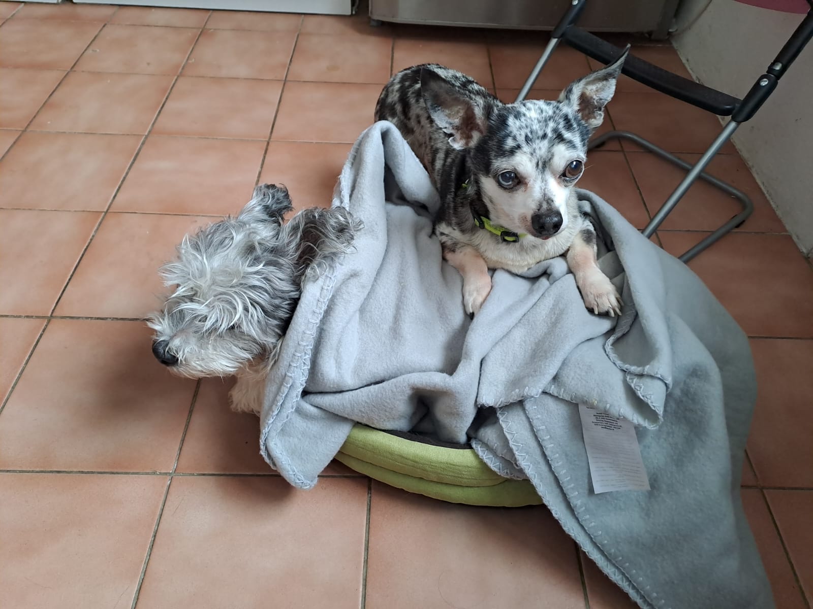 Flek našel nový domov spolu s Shagem ve Velké Bíteši. Oba kluci se mají skvěle. Jsou aktivní a užívají si výletů i společných dovolených. Flek je opatrný, ale zároveň umazlený, takže neopovrhne nikým, kdo ho chce hladit.