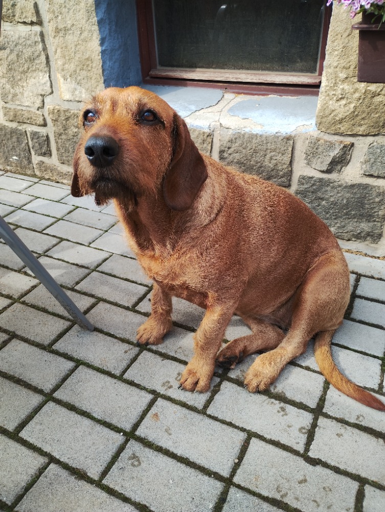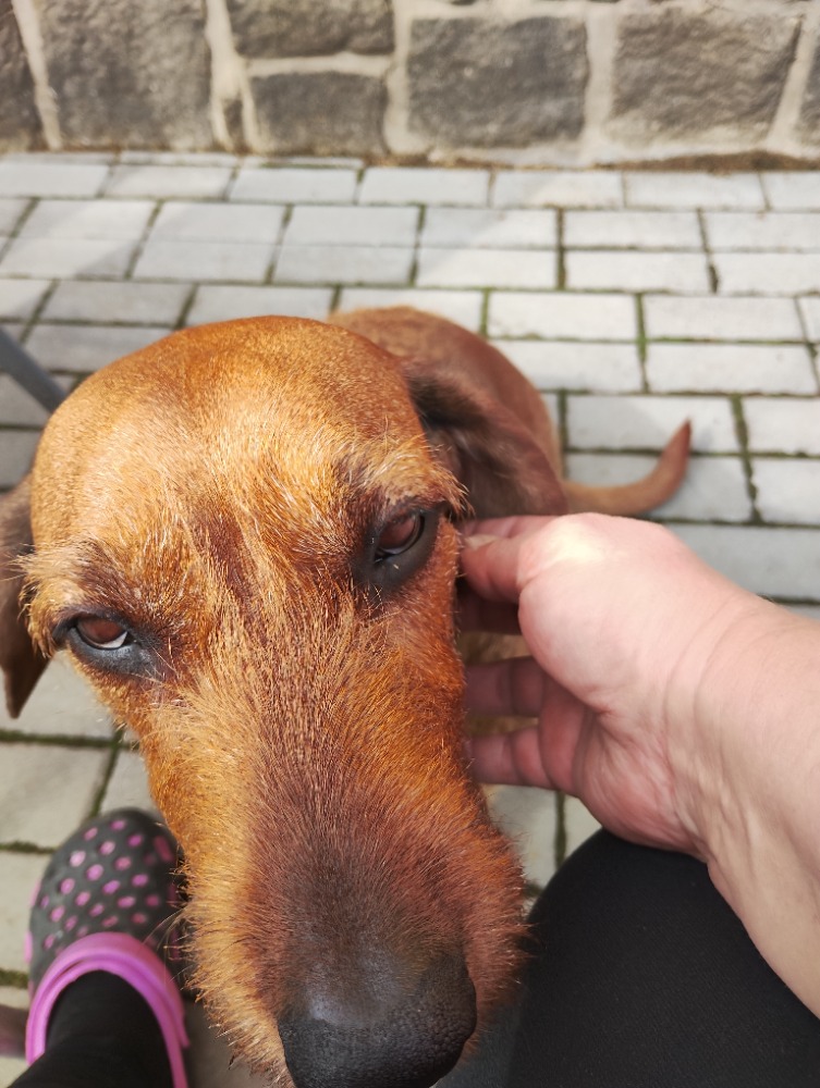 Karamelka je jedna ze 4 štěněcích holčiček, které jsme přijali jako nalezence. Jedná se o křížence jezevčíka, v dospělosti asi 10 kg. K odběru budou až v 8 týdnech, tedy za 3 týdny. Holčičky jsou veselé a hravé, jako každé jiné štěně.