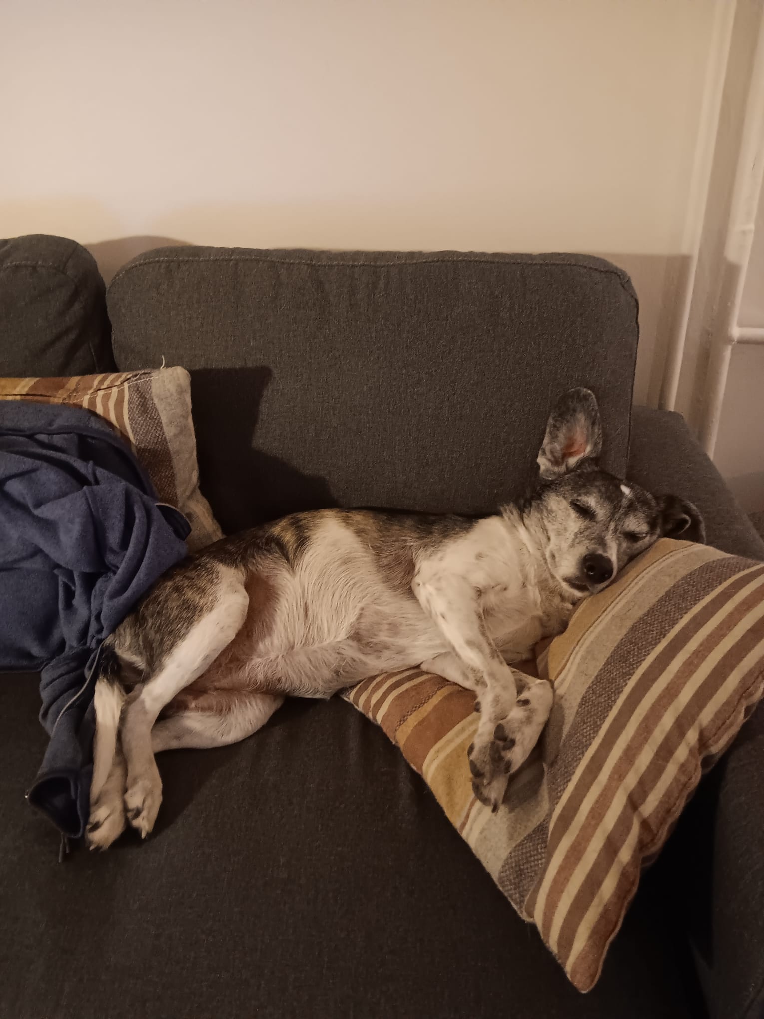 Karlička našla nový domov v Praze a jmenuje se nyní Kofinka. Podle paničky je to láska. Spí pod peřinou, ale není to jenom gaučák, zvládá s ní všechno možné i nemožné. Chodí jako canisterapeutka za seniory do Motola, běhá na coursingu, jezdí se skautským oddílem, byla na kurzu psí záchranařiny a v létě se vykoupala i v moři. Je to prý jemná duše, trochu závislačka a moc nedává malé děti, ale pracuje na tom a zlepšuje se. Její největší zlozvyk je prý to, že je popelnice 😀 Adoptovat Kofinku bylo pro paničku to nejlepší rozhodnutí v životě.