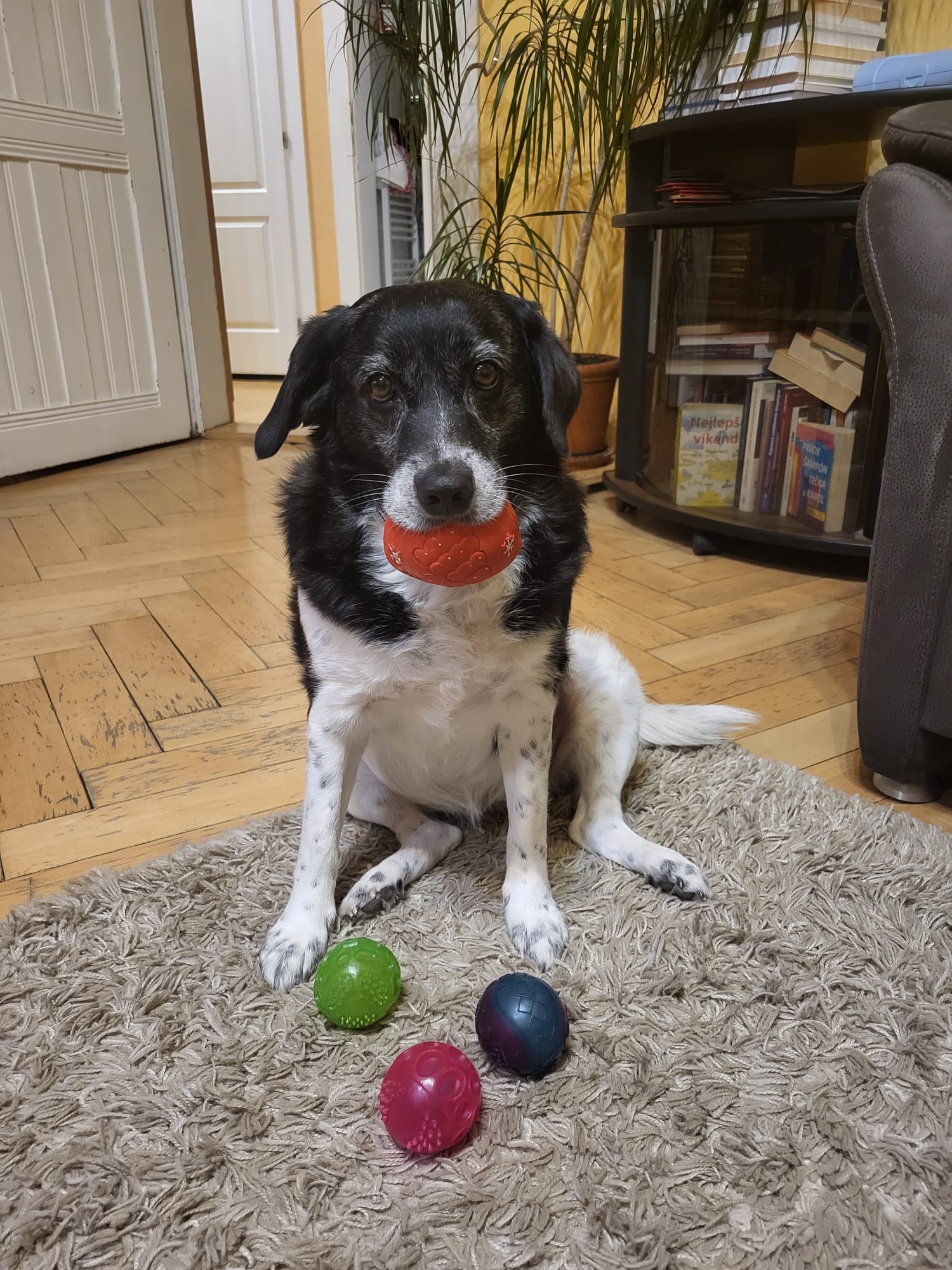 Kala je malá kříženka. Váží 10 kg a měří 38 cm v kohoutku. Spolu s jejími 8 štěňátky byla odebrána z nevhodných podmínek. Štěňátka budou k odběru ve věku 8 týdnů, tj na přelomu července a srpna.