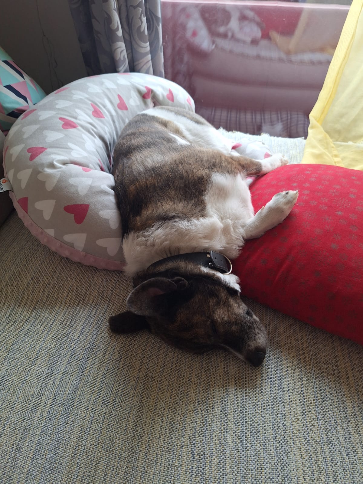 Kala je malá kříženka. Váží 10 kg a měří 38 cm v kohoutku. Spolu s jejími 8 štěňátky byla odebrána z nevhodných podmínek. Štěňátka budou k odběru ve věku 8 týdnů, tj na přelomu července a srpna.