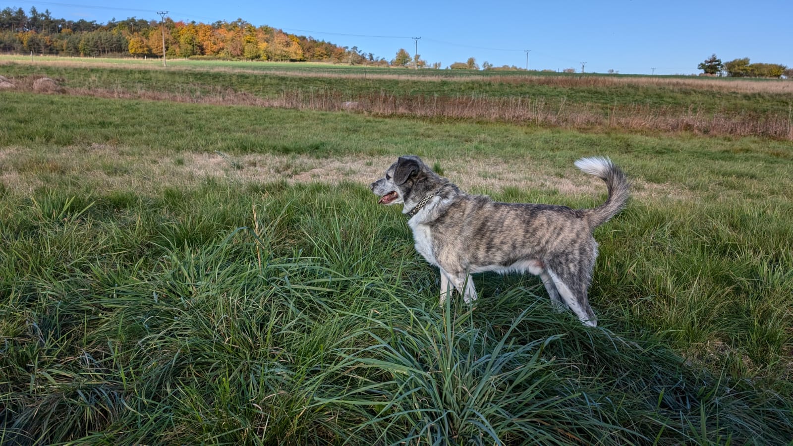 Kala je malá kříženka. Váží 10 kg a měří 38 cm v kohoutku. Spolu s jejími 8 štěňátky byla odebrána z nevhodných podmínek. Štěňátka budou k odběru ve věku 8 týdnů, tj na přelomu července a srpna.
