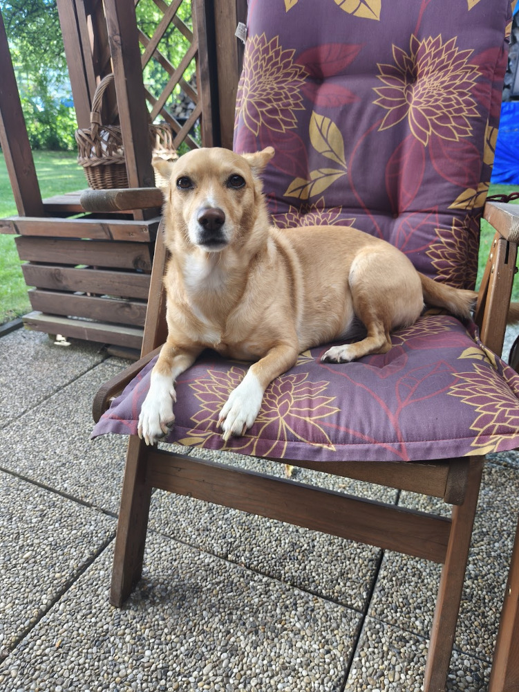 Madlenka našla svůj nový domov v Jihlavě a je z ní šťastná a spokojená holčička! Nejraději se věnuje běhání po zahradě, horské turistice a spánku. Jezdí na chatu, kde ve dne hlídá zahradu a v noci je z ní postelové psisko.