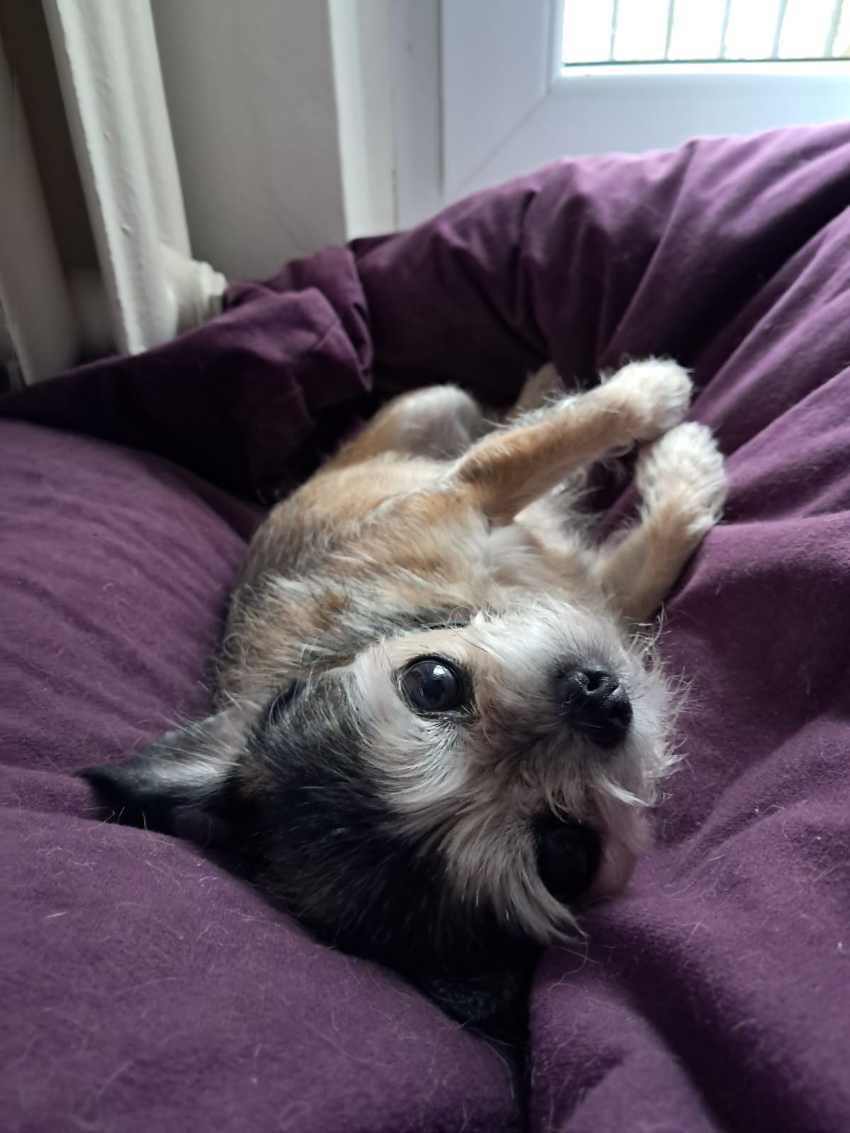 Molly je asi půlroční fenečka z kauzy množírny v Kamenici nad Lipou. Váží 1,5 kg a je to velká šikulka.