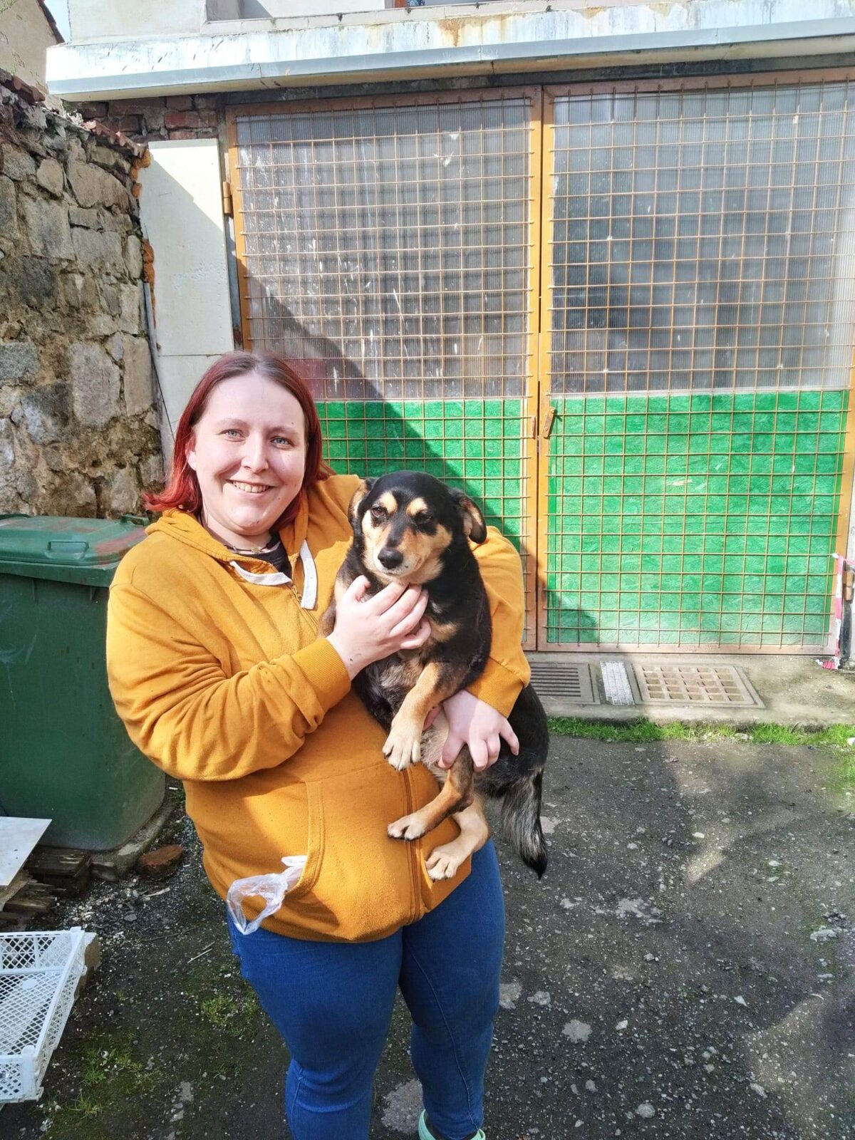 Molly našla svůj nový domov v Telči. Má se čile k světu – na to, jaké to bylo klidné štěňátko, tak je teď pěkný divoch. Chvilku neposedí, ale je to paniččin mazel.