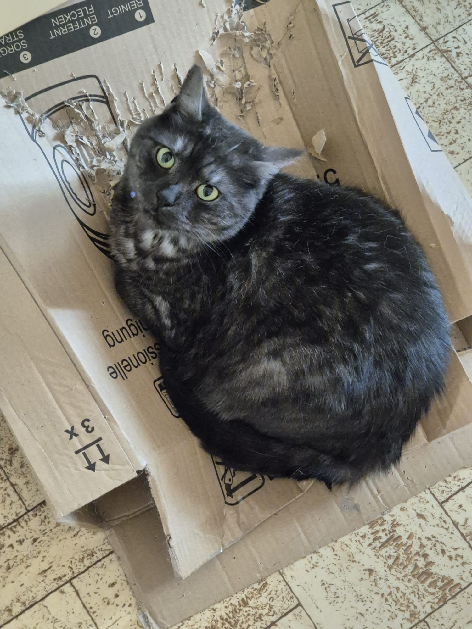 Pralinka našla nový domov v Jihlavě. Je to paní domu, ostatní zvířátka má totálně pod packou. Má 3 domečky, které ji absolutně nezajímají, protože si místo toho oblíbila košík a krabici. S pánečky jezdí i na chatu, kde má svoji kamarádku.