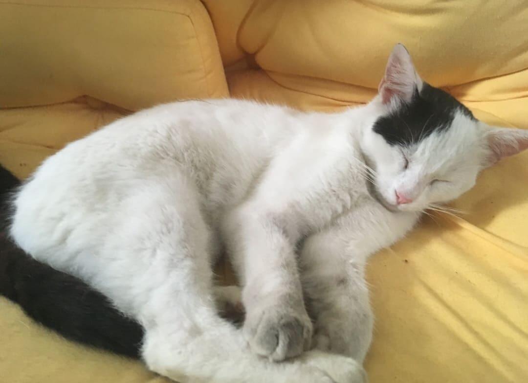 Sněhurka byla nalezena na hlavní silnici poblíž pošty v Pelhřimově v pátek, dne 22. 6. 2018. Jedno oko měla slepené a byla celkově zanedbaná.