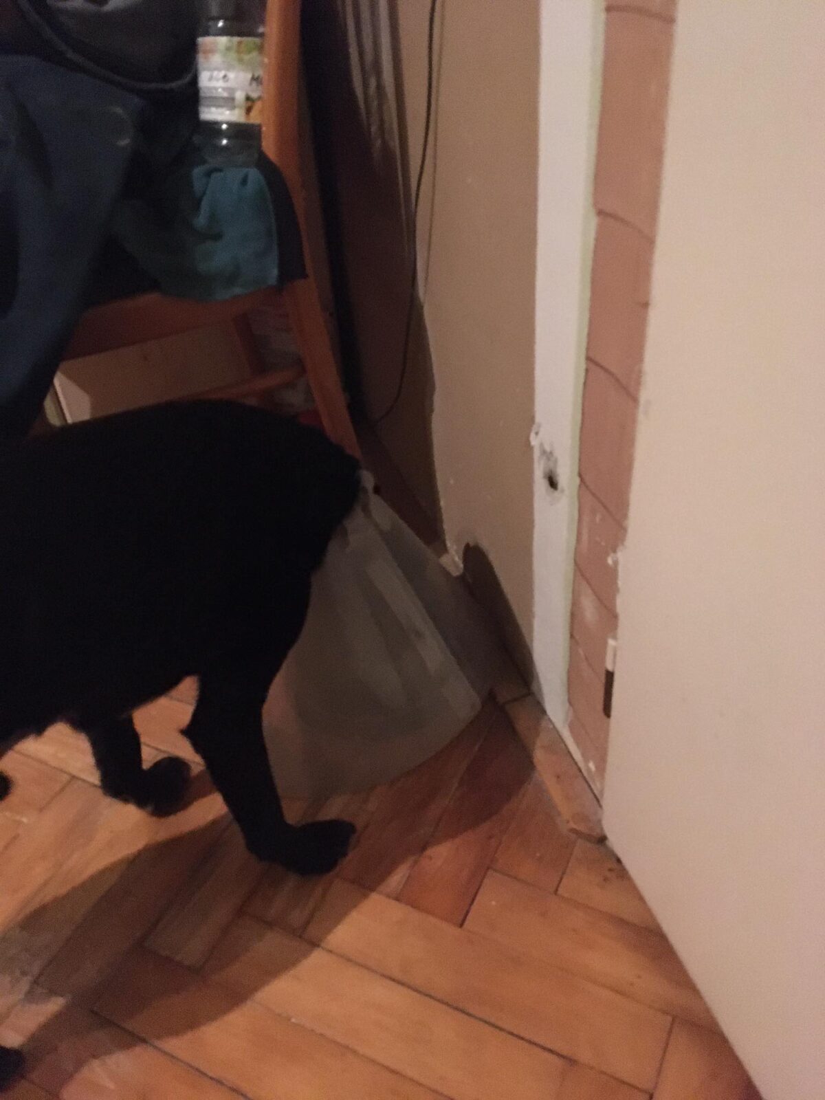 Ťapík zakempoval začátkem května 2018 v Rynárci u domu s hárající fenou. Je pokousaný od ostatních psů, ale již se mu to pěkně hojí.