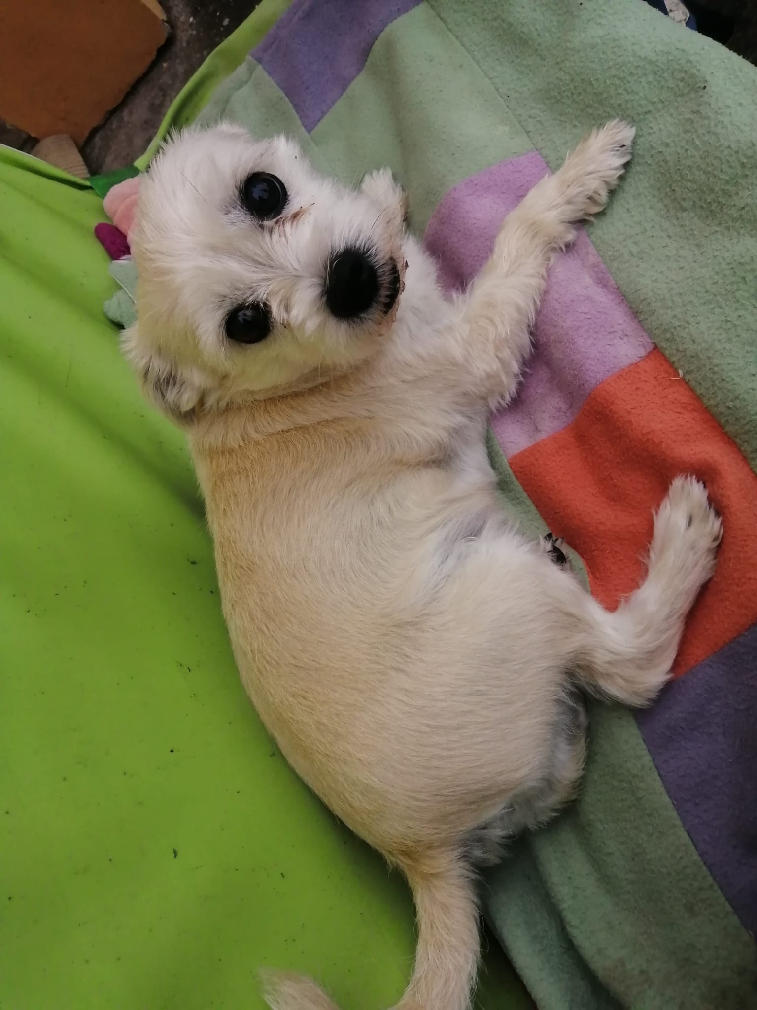 Verunka je asi roční kříženka pravděpodobně jorkšíra a čivavy, váží 4 kg. Verunka je krásná a milá holčička, která u nás začíná pomalu rozkvétat. Je sice ještě trochu plachá, ale začíná se v ní projevovat jorkšíří temperament. Je hravá, miluje mazlení a pořád žebrá o jídlo. Je neuvěřitelně milá, vděčná a oddaná. Velice rychle se naučila venčit venku, je učenlivá a chápavá. Miluje škrábání na bříšku, vyhledává lidskou společnost, vyloženě vítací typ. Zdravotně je na tom velice dobře, pravděpodobně nebyla nikdy březí. Má pravděpodobně horší zrak, ale to může být způsobeno i špatnými životními podmínkami. Prozatím je hodně vyhublá, ale postupně na tom pracujeme. Bude jí dobře v rodině, ve kterém bude právoplatným členem rodiny se vším všudy.