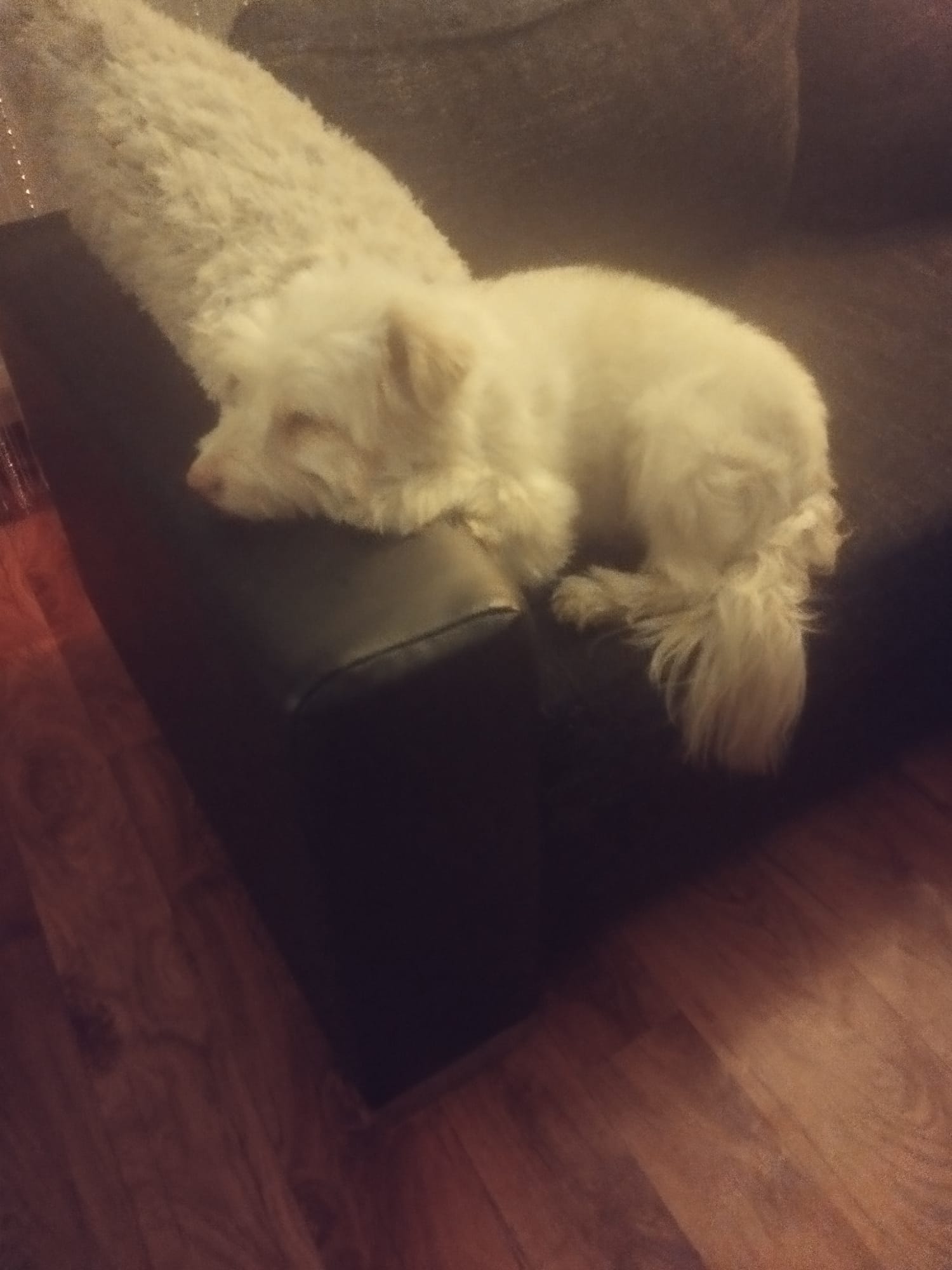 Štěňata od fenečky Žanetky jsme přijali z přemnožené smečky kousek od Brna, spolu s maminkou a tetičkou. Všichni byli velmi zablešení, začervení, špinaví od výkalů, vyděšení, hladoví. Starší fenky jsou stále velmi plaché. Štěnda se rozkoukala rychle. Velikostně budou v dospělosti do 10 kg.