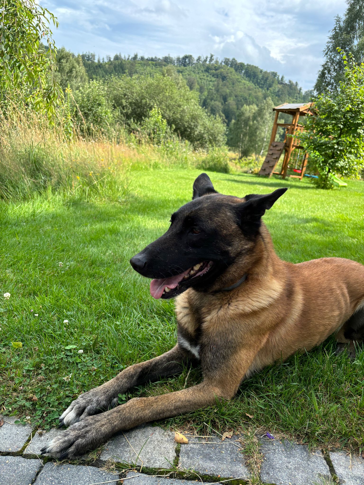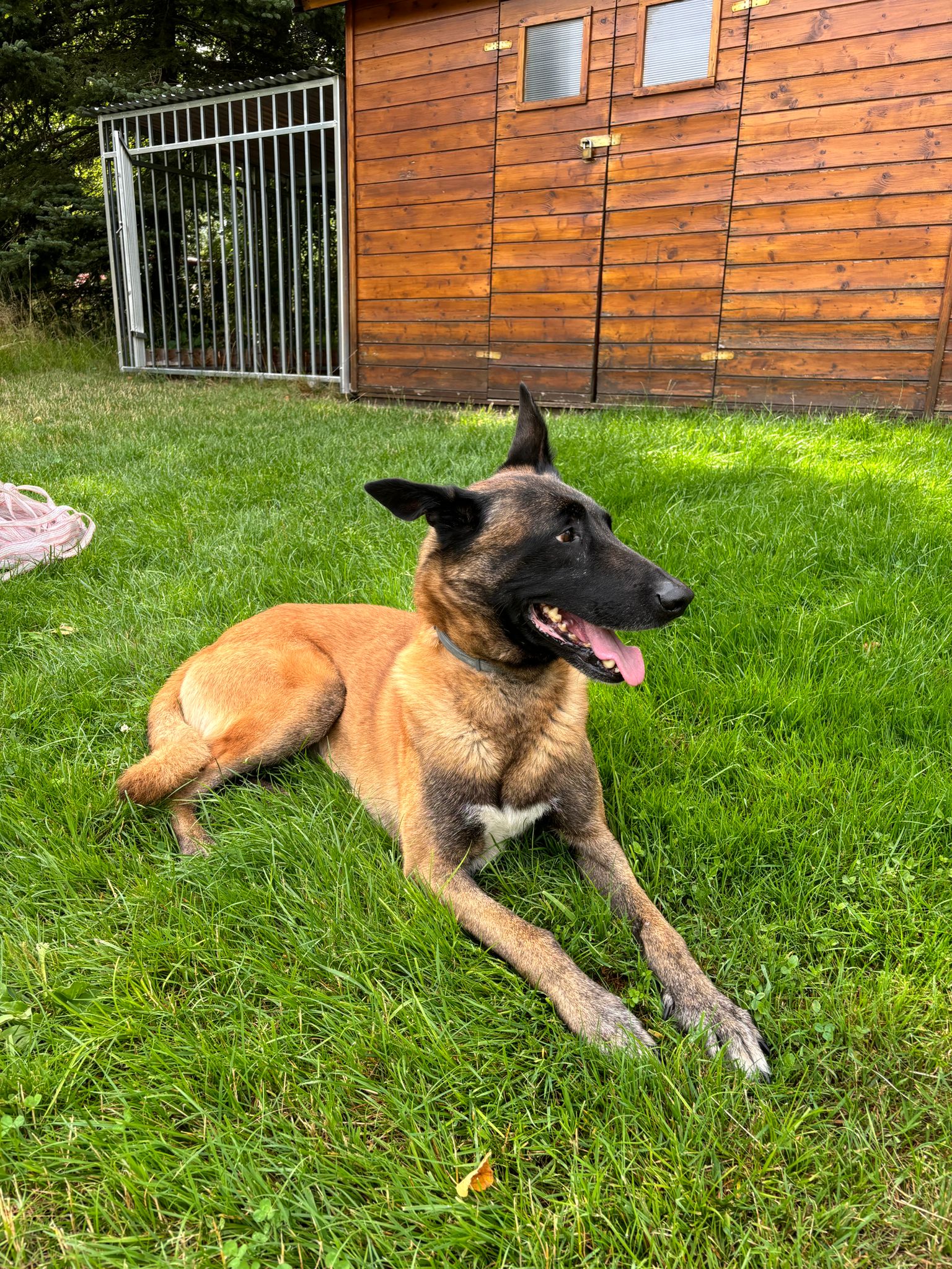Ciro je 2 letý belgický ovčák, váží cca 35kg a má 70 cm v kohoutku. Cira si jako štěně vzal pán, bohužel se o něj nemohl dál starat, tak ho daroval dál a dál až skončil v útulku. Původní majitelka si jej v útulku vyzvedla, ale bohužel si ho z kapacitních důvodů nemůže ponechat. Ciro je moc hodný, aktivní pes, který miluje lidi. Na kolemjdoucí vrtí ocasem, je zvyklý v kotci, v bytě a na pobyt v kleci. Hygienické návyky má 100%. Potichu a v klidu čeká na svého pána než přijde z práce, nic neničí. Ciro je poslušný, umí sedni, lehni, přivolání, čekej, chodit spořádaně na vodítku a taky ví, že nejdřív vychází a vchází pán. Je to obrovský mazel, vydrží se mazlit klidně i hodinu. S fenkami se snese v na jedničku, s vyrovnaným psem je taky v pohodě. Děti mu nedělají problém. Miluje procházky, běhání, ale i válení se v posteli pokud je venku zrovna fakt ošklivě. Jediný jeho problém je zvěř, má silný lovecký pud na cokoli živého kromě psa a člověka, proto není vhodný k hospodářským zvířatům ani ke kočkám. Může chodit na volno, ale je třeba mít oči na stopkách a odvolat jej včas, než zvěř zaregistruje.