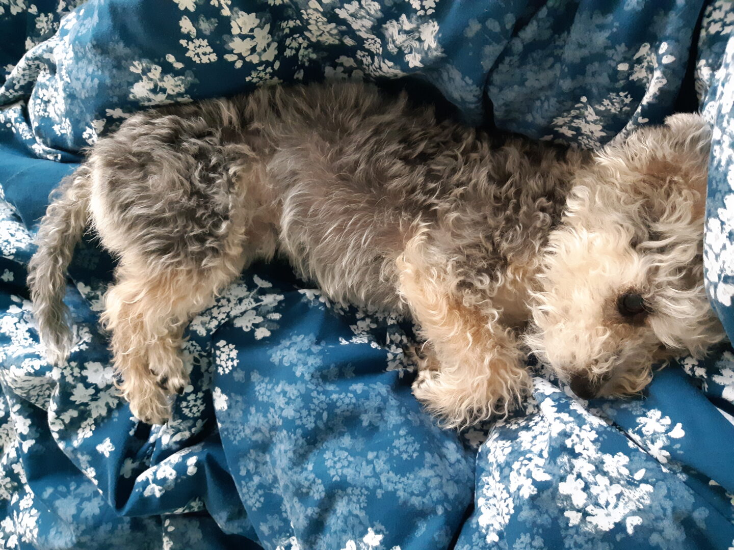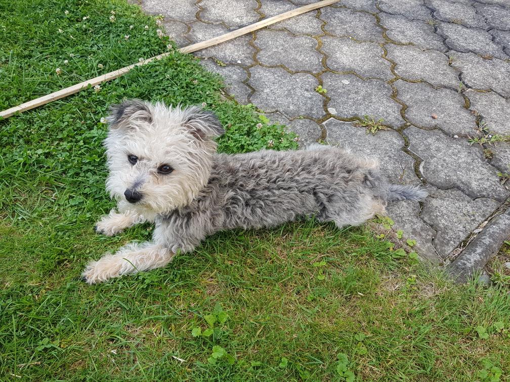 Diblík je 2 letý kříženec zřejmě pudlíka nebo boloňského psíka s jorkšírem. Váží 4 kg. Diblík je velmi milý, mazlivý a hodný. Nemá problém s nikým a ničím. Vychází bez problému se psy, má rád kočičky. K lidem i dětem je přátelský, pouze když se lekne při nečekané manipulaci, může se ohnat, trpělivostí a důsledností se to jistě brzy odbourá. Přijali jsme ho velmi špinavého, plného dredíků, zřejmě žil pouze venku. Doma si nejraději hoví vedle páníčka na gauči a nechává si drbat bříško. Samotu moc dobře nezvládá, pláče. Bude tedy vhodnější pro někoho, kdo pracuje z domu nebo si jej bude brát s sebou, případně pro někoho, kdo bydlí v domku, kde nebude rušit sousedy.