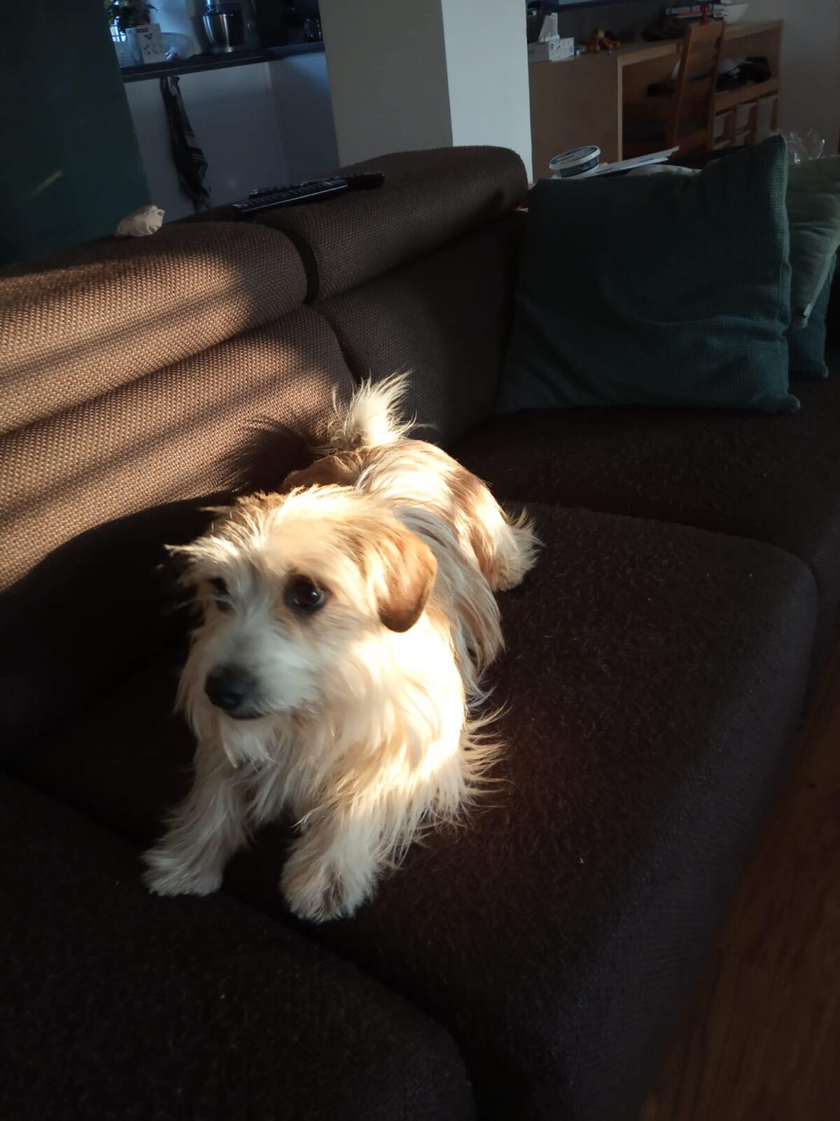 Dixinka je asi 3-4 měsíční kříženka teriéra. Váží asi 6 kg. Dixinka se našla potulovat v Dolní Cerekvi, majitel se o ni nepřihlásil a tak dorazila k nám. Dixinka je veselé, rozverné a aktivní štěně. Je moc ráda se svými lidmi a ráda si hraje se psy. Určitě je vhodná pouze do aktivní rodiny, která ji dopřeje výchovu a pohyb.