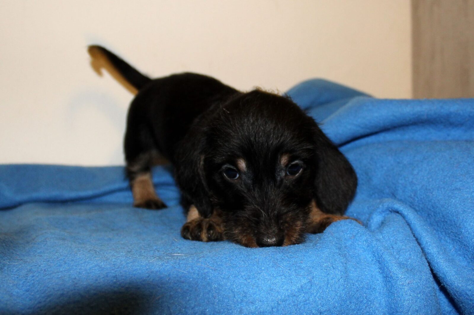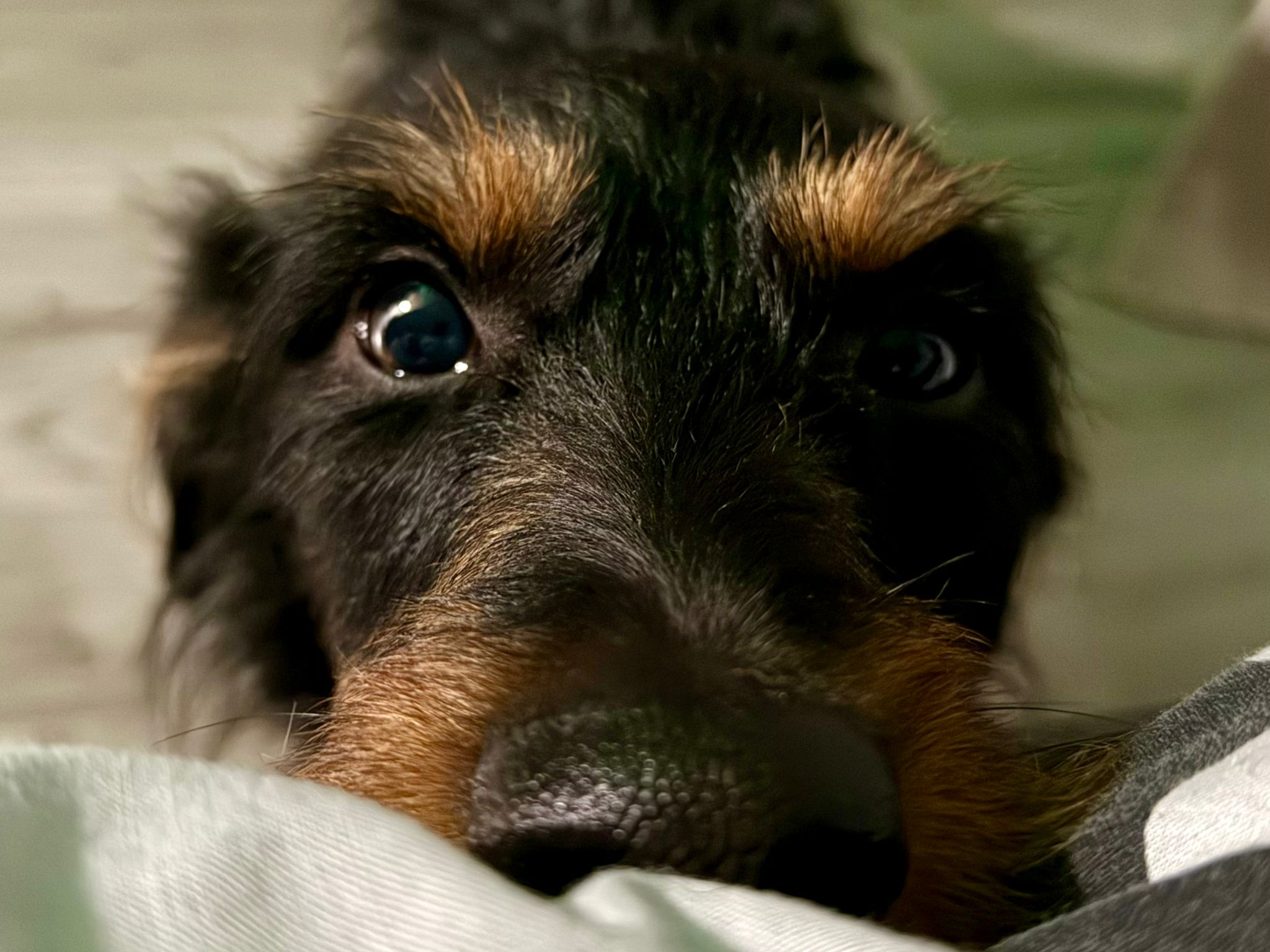 Goliáš se narodil v pátek, dne 9. 11. 2018. Jeho maminku Glorinku jsme našli ve vysokém stádiu březosti, nikdo se o ni nepřihlásil a ona krátce na to porodila 8 štěňátek. Goliášovi je nyní 6 týdnů a začíná se porozhlížet po domově. Zájemci si mohou domlouvat předadopční návštěvy pouze přes zprávy na našich facebookových stránkách, nebo na e-mailu: docaskaazyl@seznam.cz.