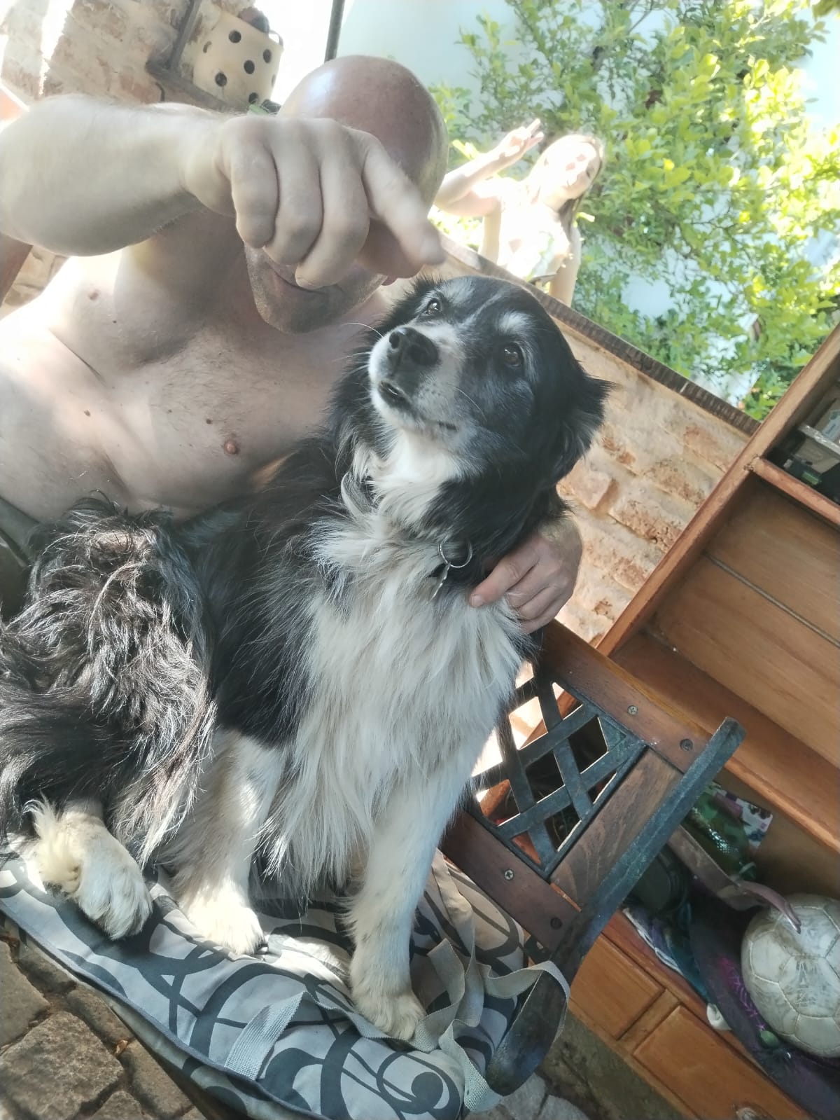 Iza je 5 letá kříženka border kolie. Váží 21 kg. Iza je úžasná fenka, naprosto oddaná svému pánovi, neustále na něm visí pohledem. Je velmi poslušná, venku může chodit na volno, ignoruje cizí psy, občas ji lákají lidi. Je velmi kontaktní, má ráda i děti. S ostatními psy vychází bez problému. Její jedinou vášní, kterou nelze ovládat, je něco mezi pasením a lovením, kdy Iza nedá pokoj žádnému menšímu zvířeti. Není vhodná ke kočkám, ani k žádným jiným malým zvířatům, pase je, honí a klidně i kousne. Kozy, koně, ovce atd. jsou v pohodě. Nechá se odvolat, ale jen na chvilku, jde o posedlost, se kterou po dobrém nelze nic dělat. Doma je čistotná, po odchodu pána může chvilku štěkat, ale poté je klid a nic neničí. Po velmi náročných procházkách nadlehčuje jednu přední nohu, není tedy vhodná ke psím sportům, dostává a měla by celoživotně dostávat kloubní výživu.