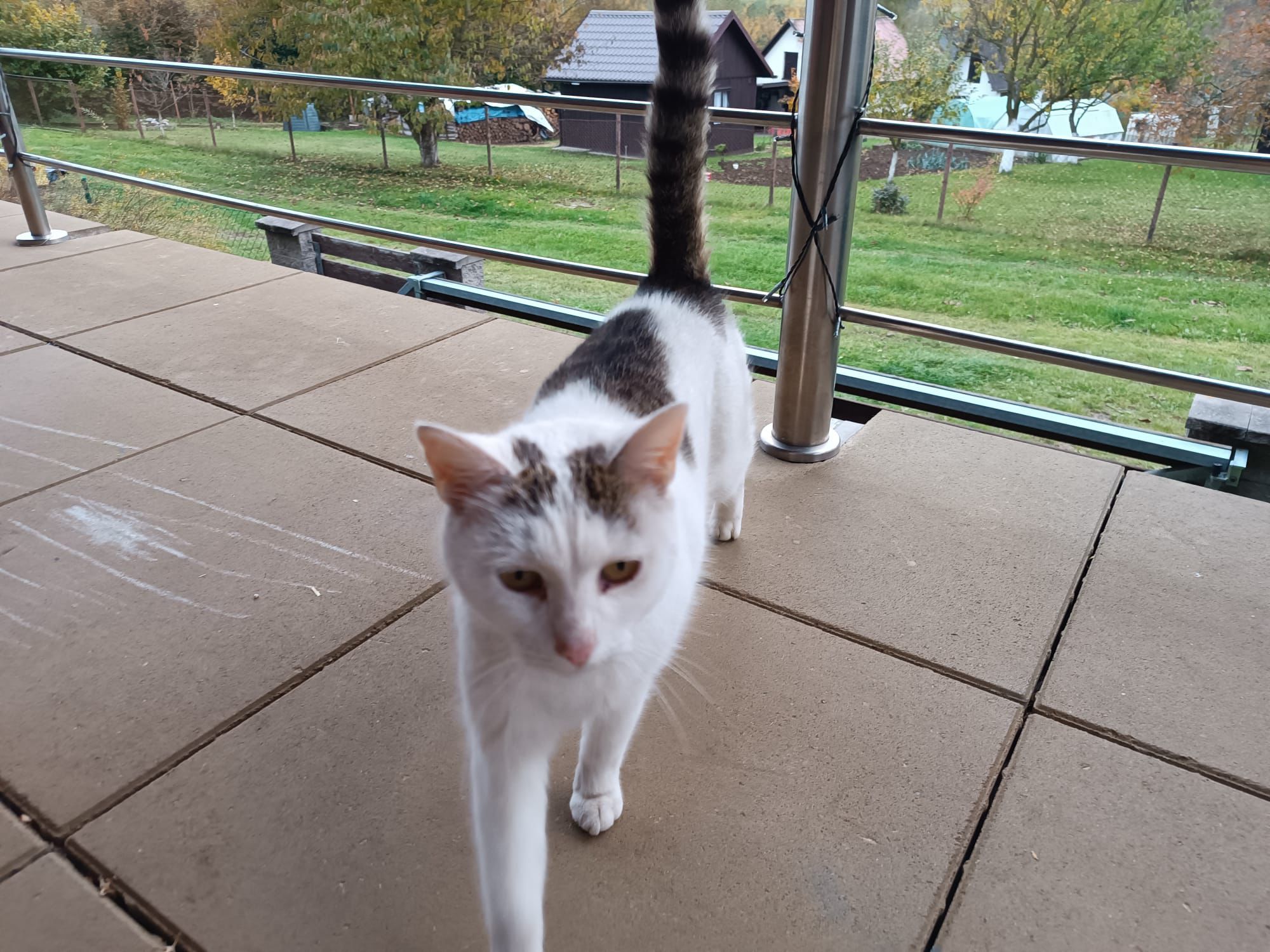 Káťa je 8 týdnů stará kočička. Spolu se svými brášky a maminkou přebíhali silnici, ale maminka to bohužel nepřežila a koťátka se schovala do kanálů odkud nechtěla za žádnou cenu vylézet. Nakonec se zadařilo a tak u nás čekají na nové domovy, kde zajistí aby nedopadli jako jejich maminka. Káťa je miloučká holčička, ještě se trochu bojí, ale je to lepší a lepsí. Zvyklá na kočičí záchůdek a hraní s brášky.
