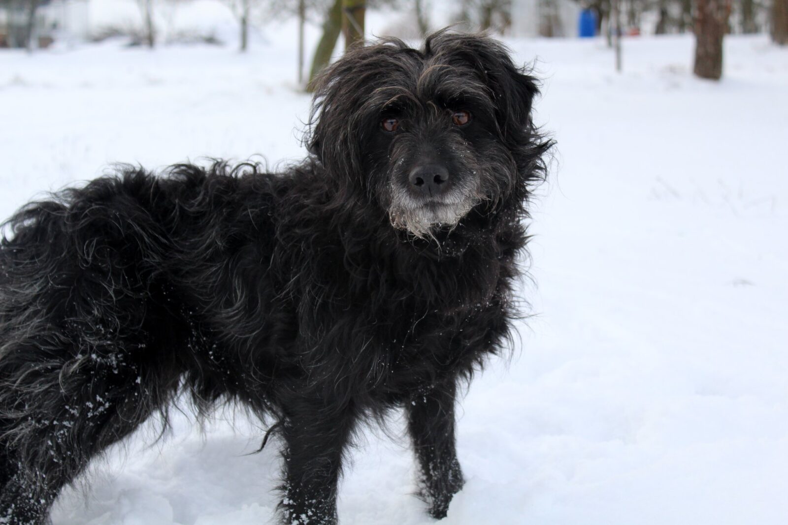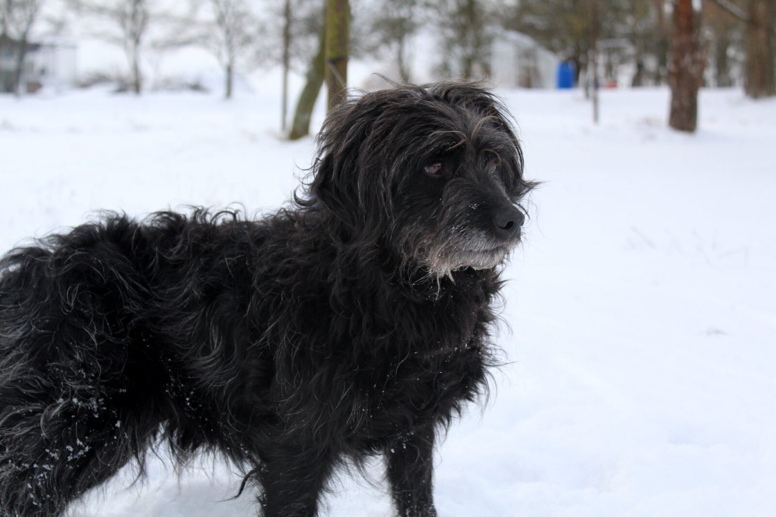 Kudrlinka je asi pětiletá kříženka knírače. Váží 10 kg, je velmi hodná, klidná, milá a bezproblémová. Je přátelská ke všem psům i kočkám, děti má také moc ráda. Byla nalezena 21. 12. 2018 ve večerních hodinách mezi Kalištěm a Klatovcem.